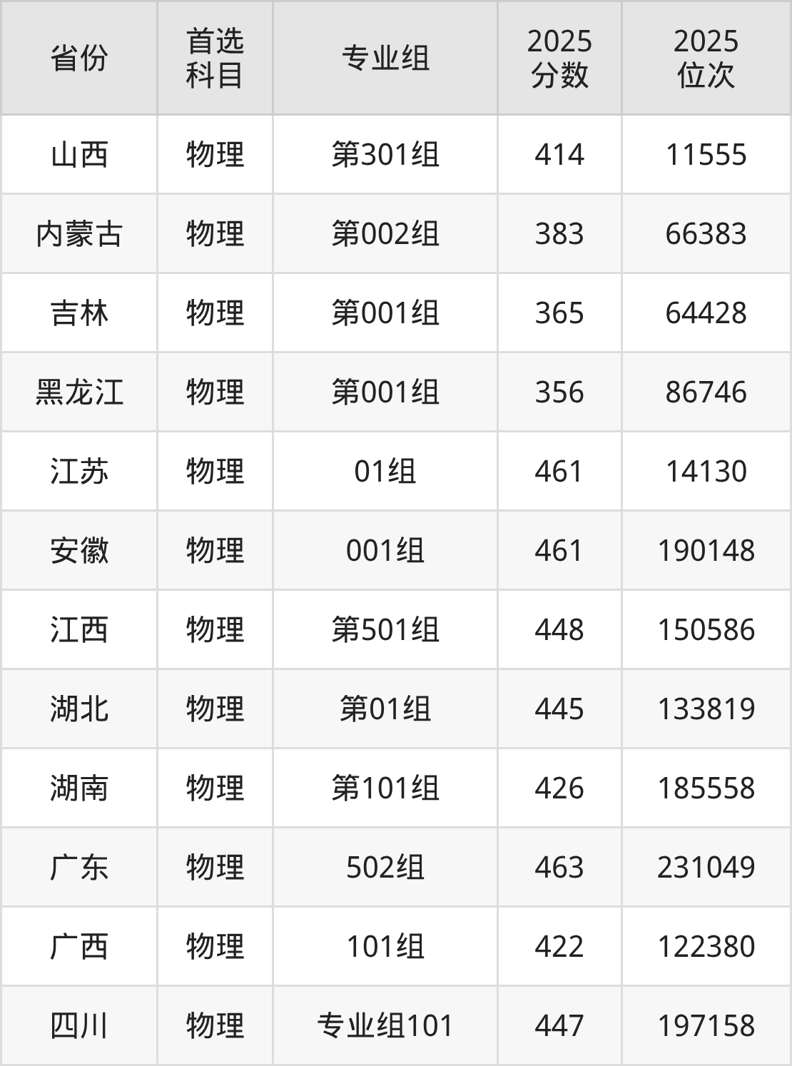 12.湖北:物理类445分、133819位