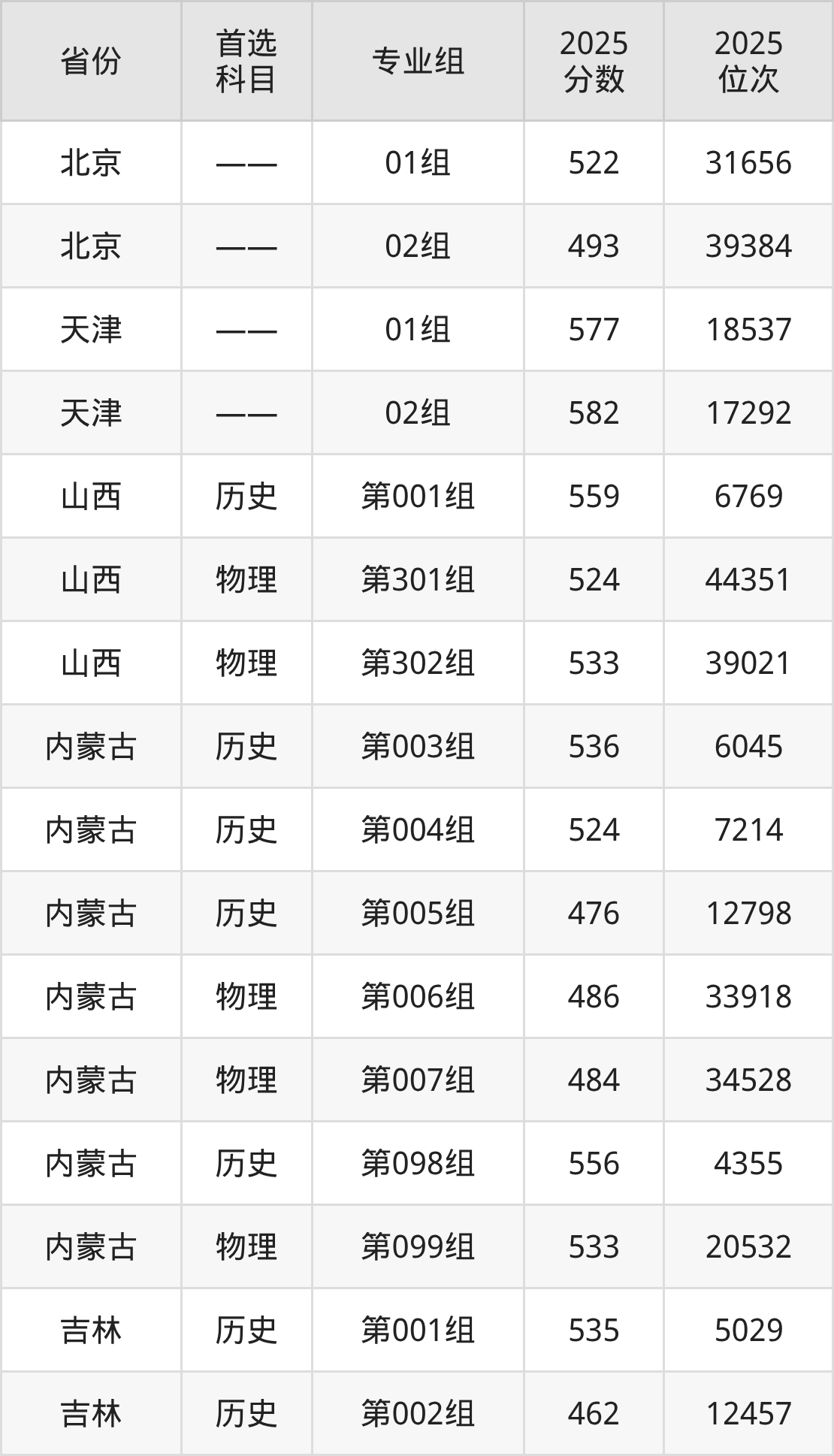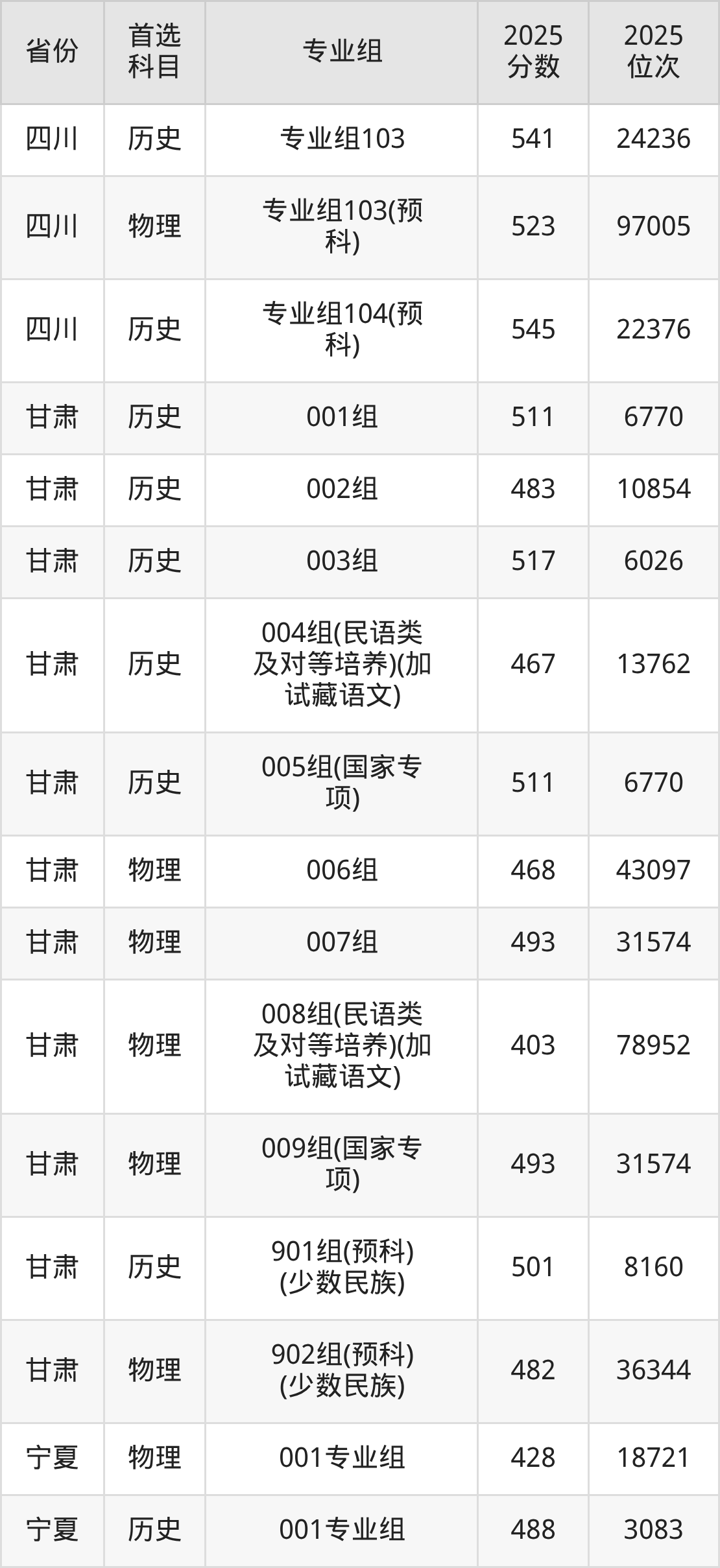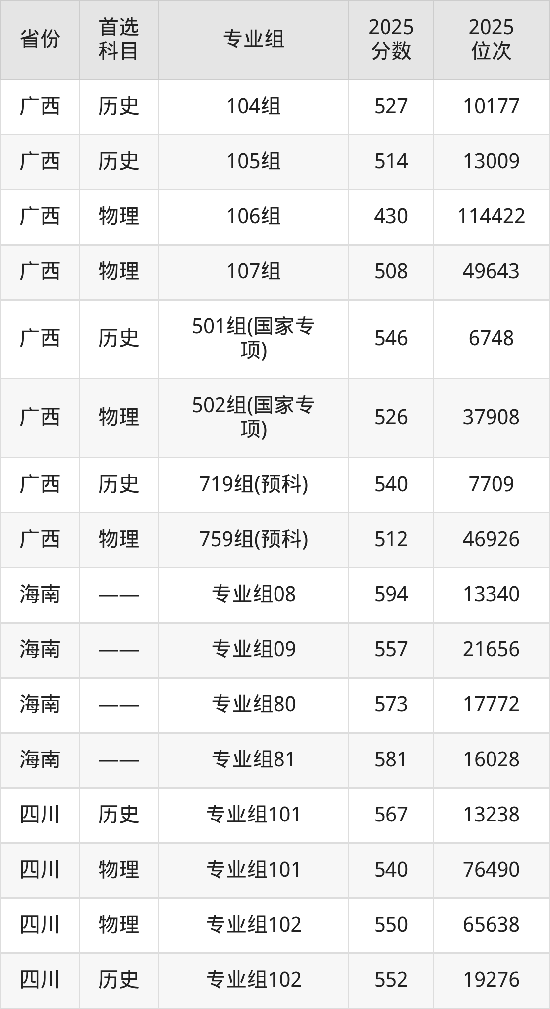 因为大部分地区目前只公布了院校(专业组)分数线,为了方便2026年考生参考,本文就整理出西南民族大学在全国各省不同科类的最低分:
