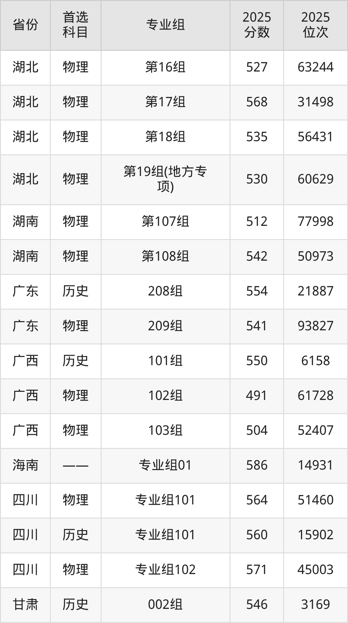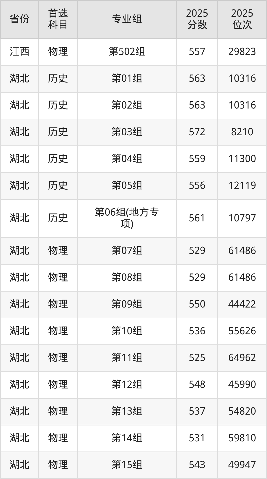 因为大部分地区目前只公布了院校(专业组)分数线,为了方便2026年考生参考,本文就整理出江汉大学在全国各省不同科类的最低分: