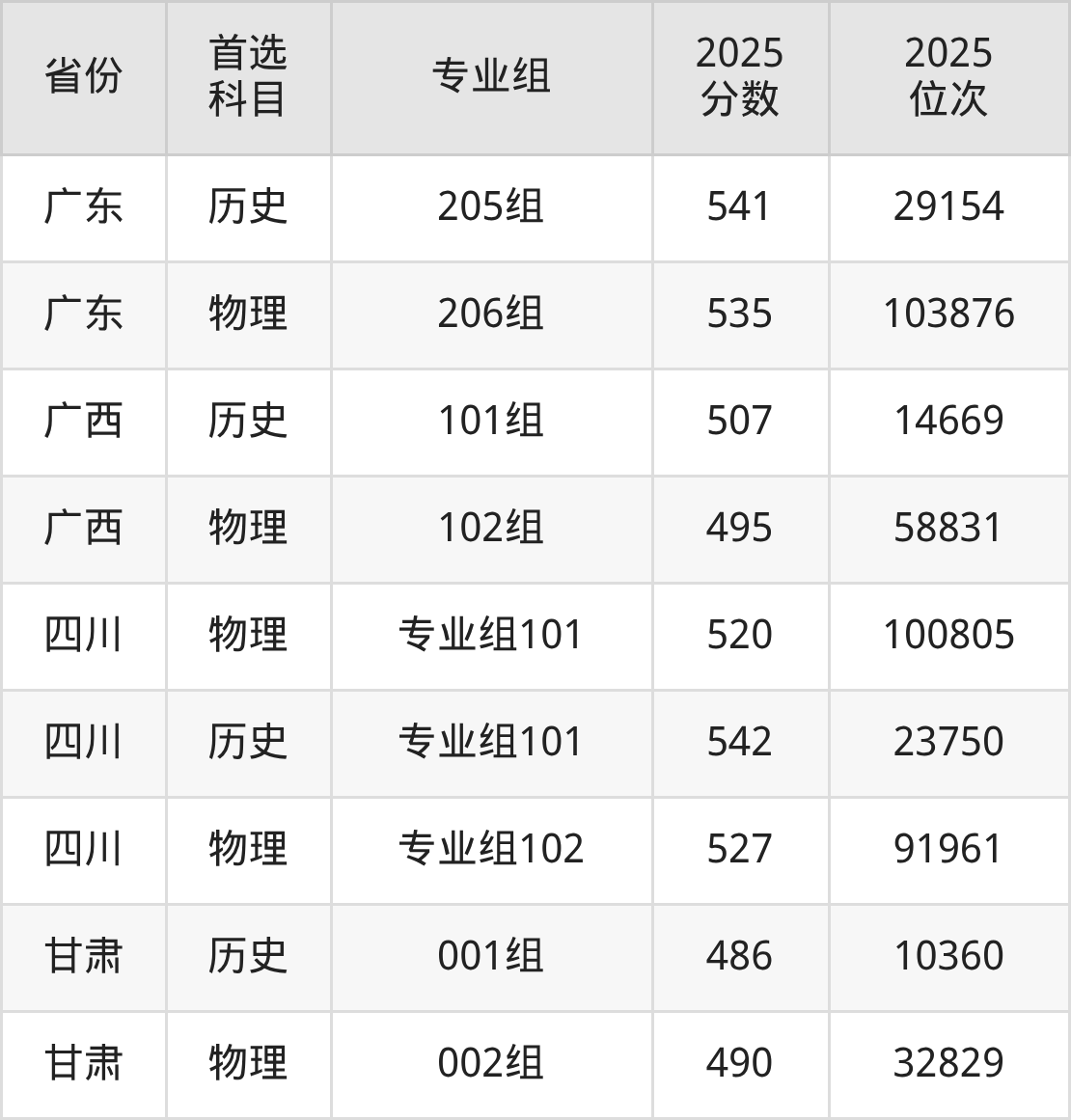 11.四川:历史类542分、23750位,物理类520分、100805位