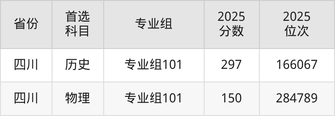 11.四川:物理类150分、284789位,历史类297分、166067位