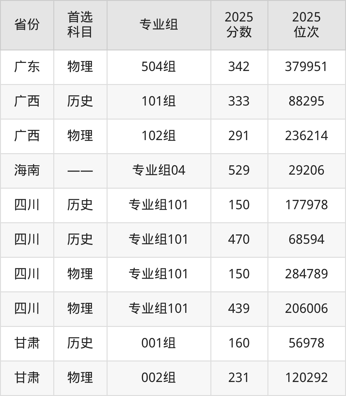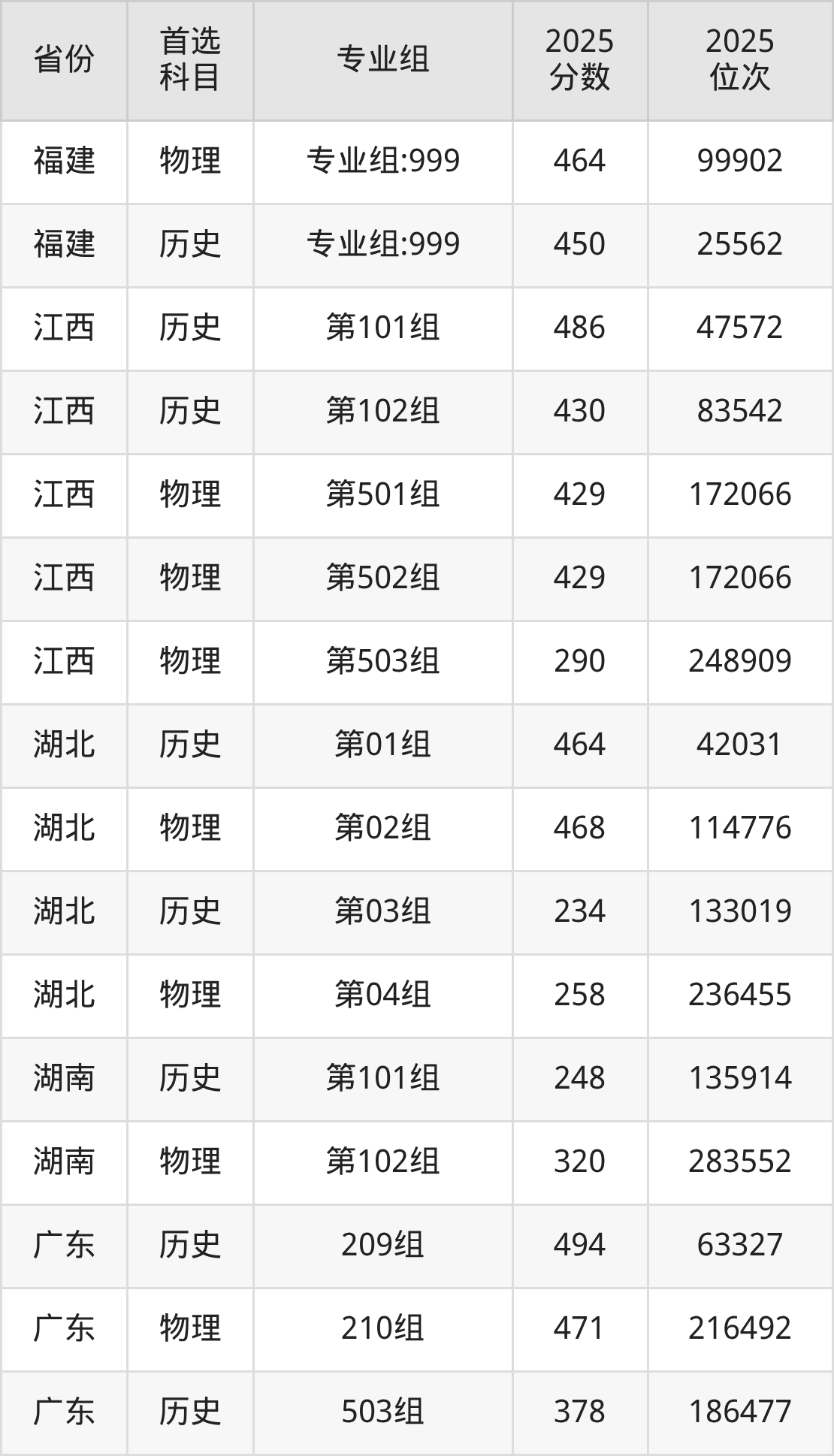 因为大部分地区目前只公布了院校(专业组)分数线,为了方便2026年考生参考,本文就整理出南昌职业大学在全国各省不同科类的最低分: