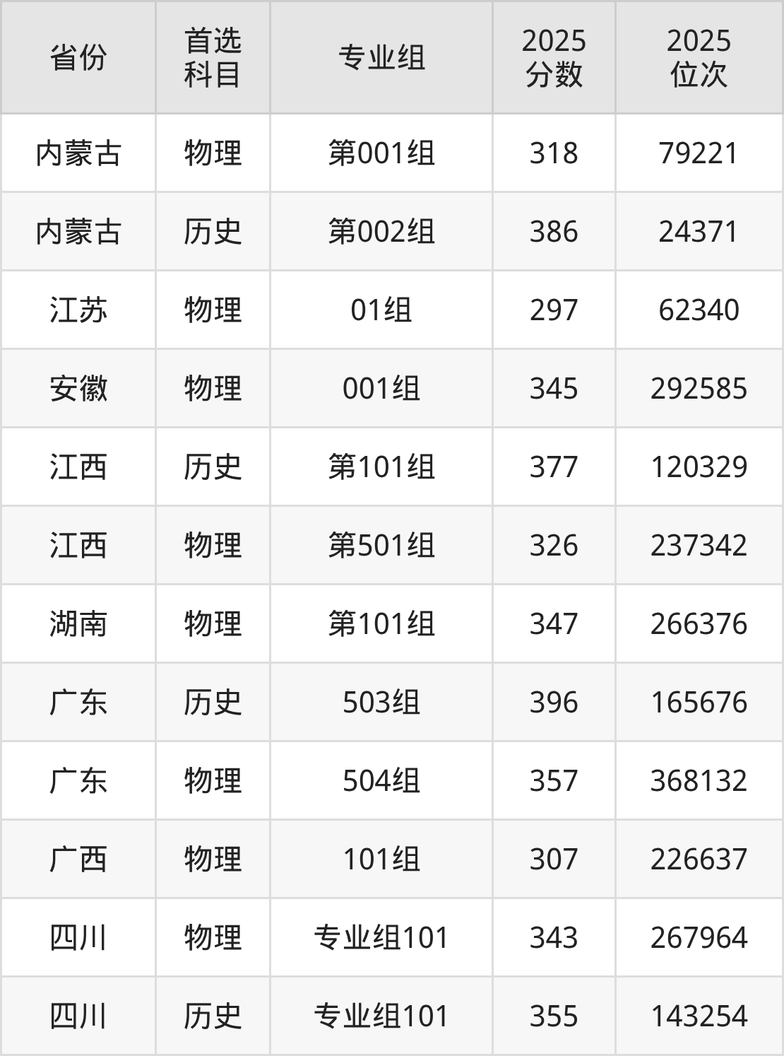 因为大部分地区目前只公布了院校(专业组)分数线,为了方便2026年考生参考,本文就整理出濮阳职业技术学院在全国各省不同科类的最低分: