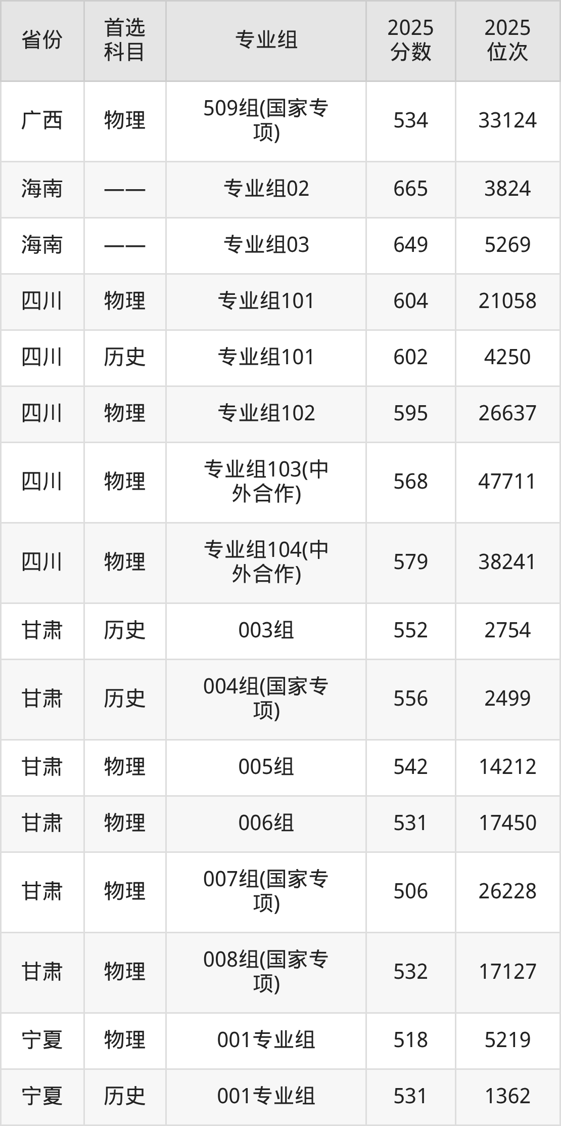 因为大部分地区目前只公布了院校(专业组)分数线,为了方便2026年考生参考,本文就整理出中国矿业大学在全国各省不同科类的最低分:
