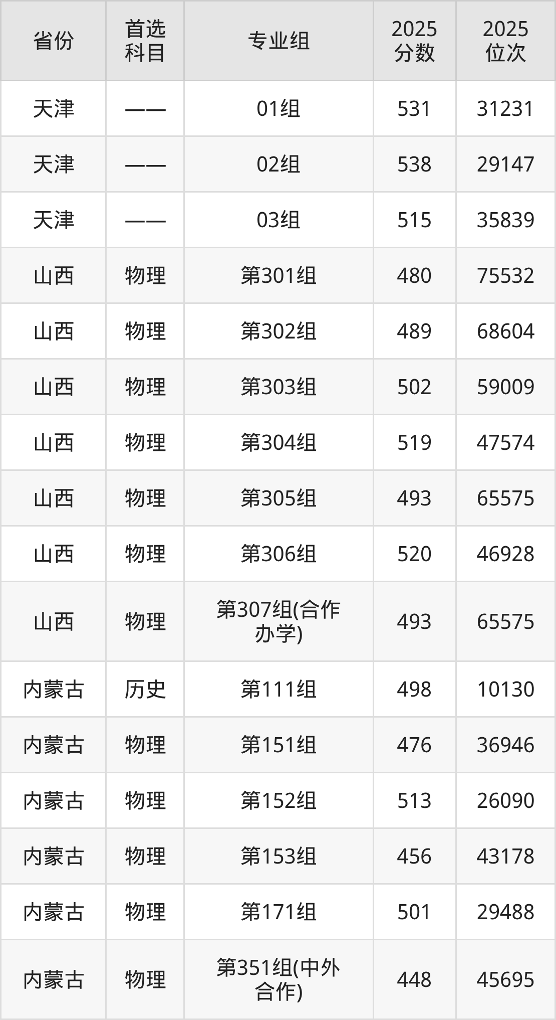 广西科技大学各专业录取分数线为:软件工程542分、新能源汽车工程540分、机械工程(应用本科)537分等,以上均参考自2025年浙江的录取数据,具体各专业分数线详见下文。