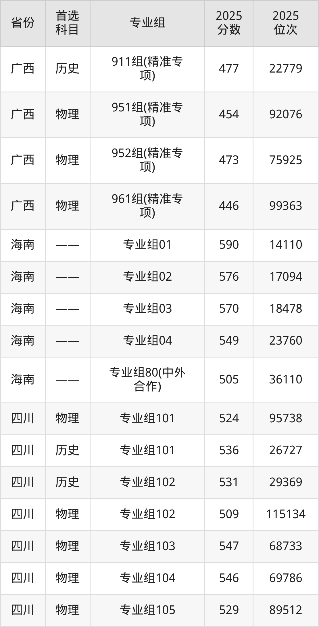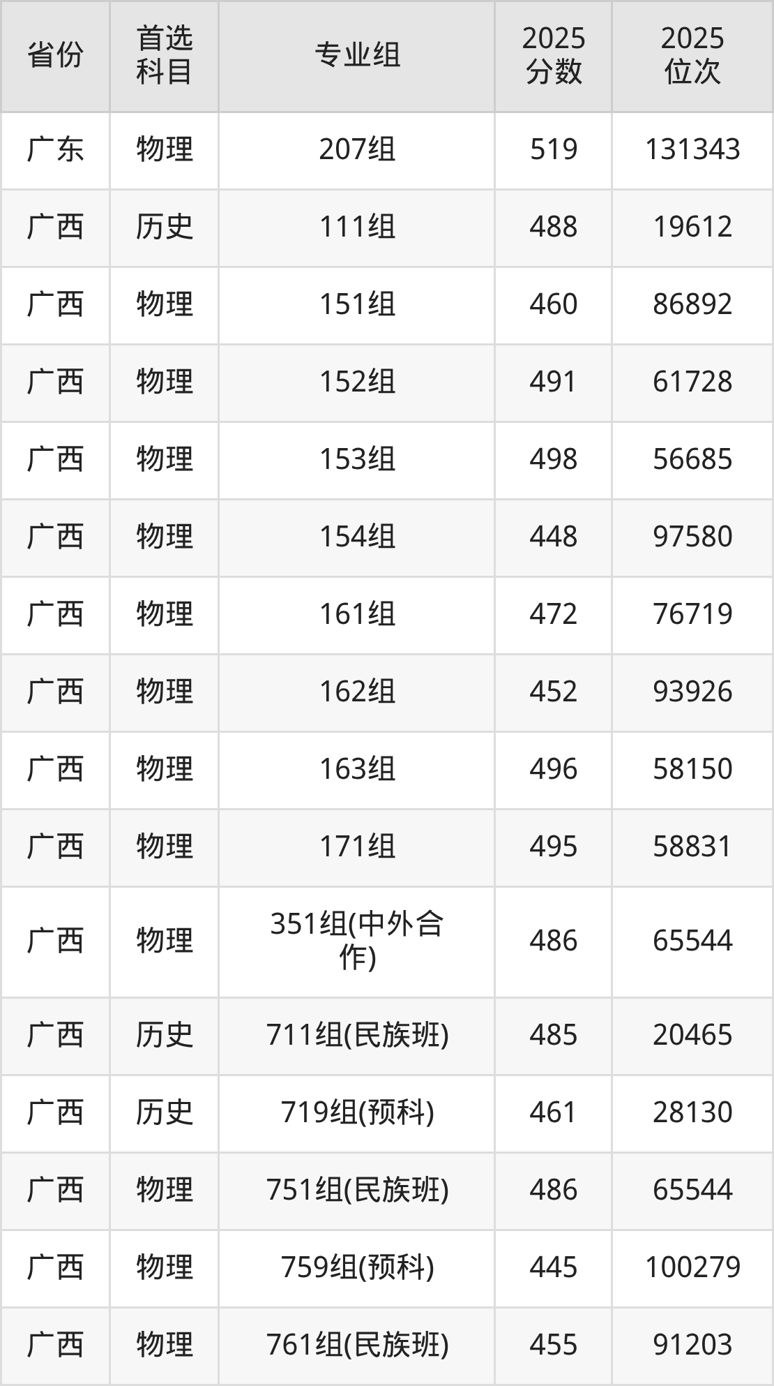因为大部分地区目前只公布了院校(专业组)分数线,为了方便2026年考生参考,本文就整理出广西科技大学在全国各省不同科类的最低分: