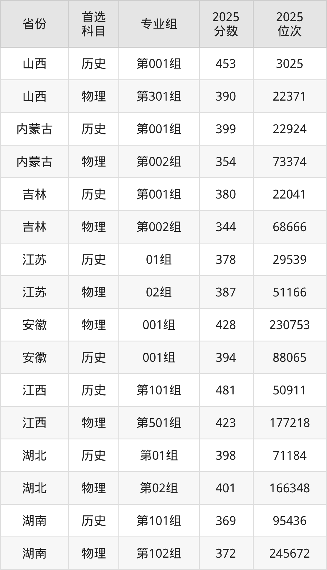 因为大部分地区目前只公布了院校(专业组)分数线,为了方便2026年考生参考,本文就整理出湖南石油化工职业技术学院在全国各省不同科类的最低分: