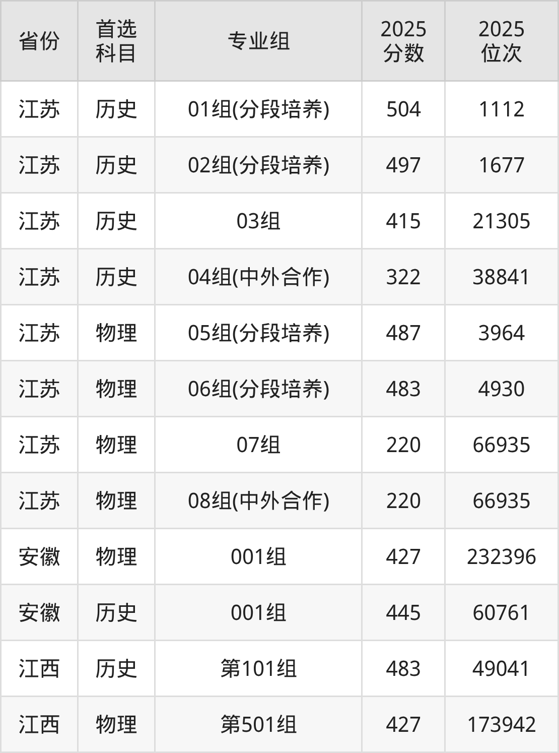 因为大部分地区目前只公布了院校(专业组)分数线,为了方便2026年考生参考,本文就整理出江苏农林职业技术学院在全国各省不同科类的最低分: