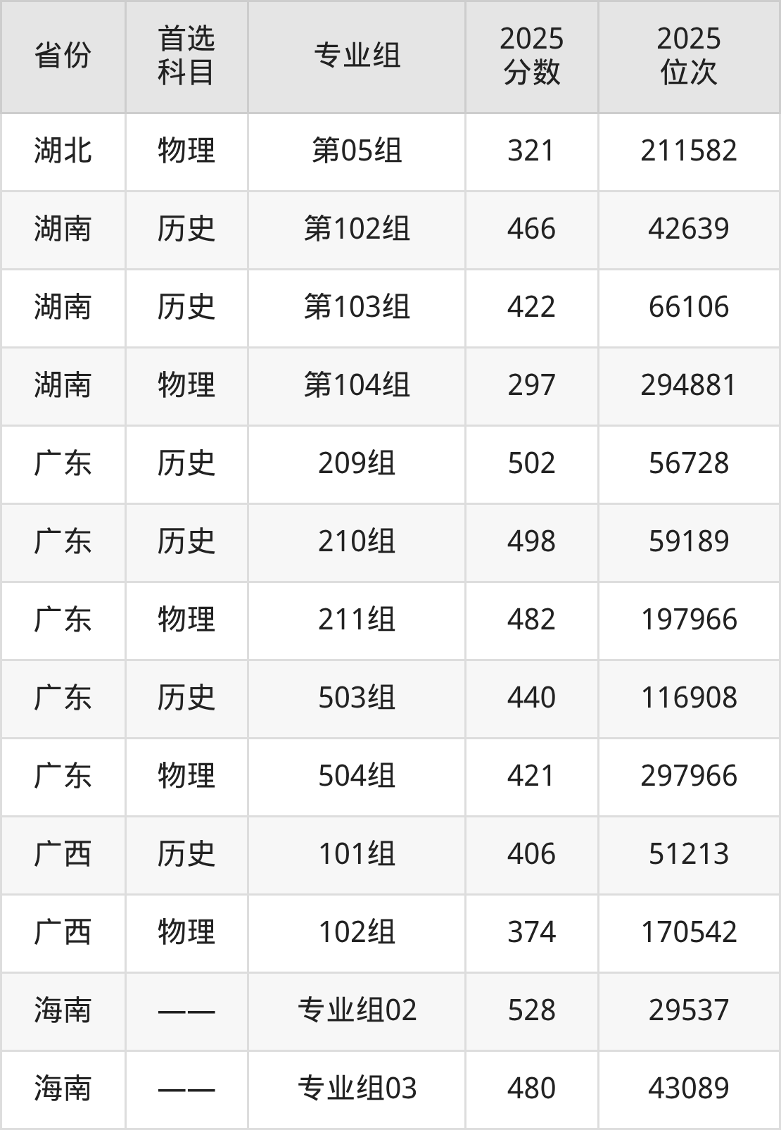 因为大部分地区目前只公布了院校(专业组)分数线,为了方便2026年考生参考,本文就整理出汉口学院在全国各省不同科类的最低分: