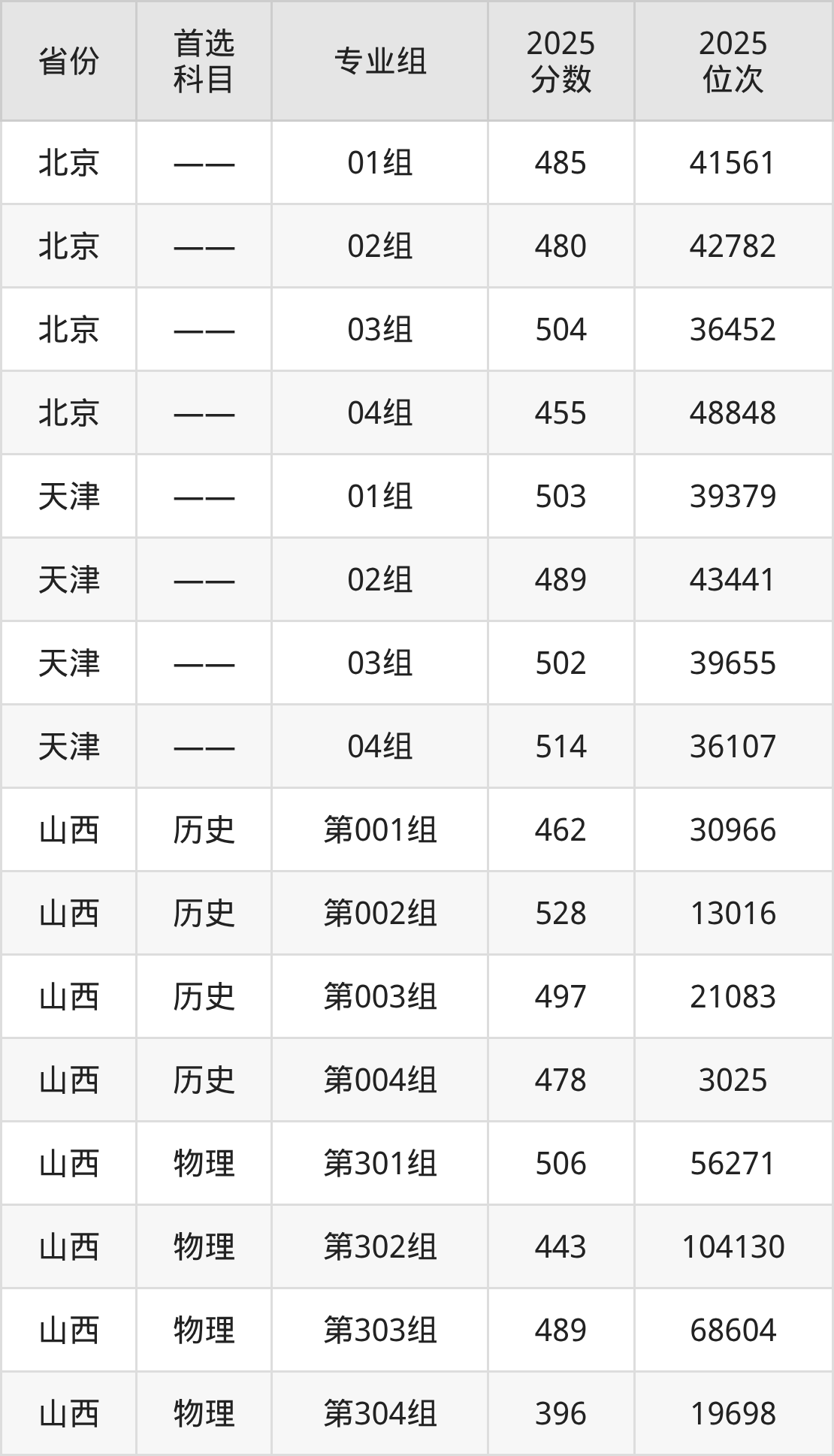 因为大部分地区目前只公布了院校(专业组)分数线,为了方便2026年考生参考,本文就整理出北京中医药大学东方学院在全国各省不同科类的最低分: