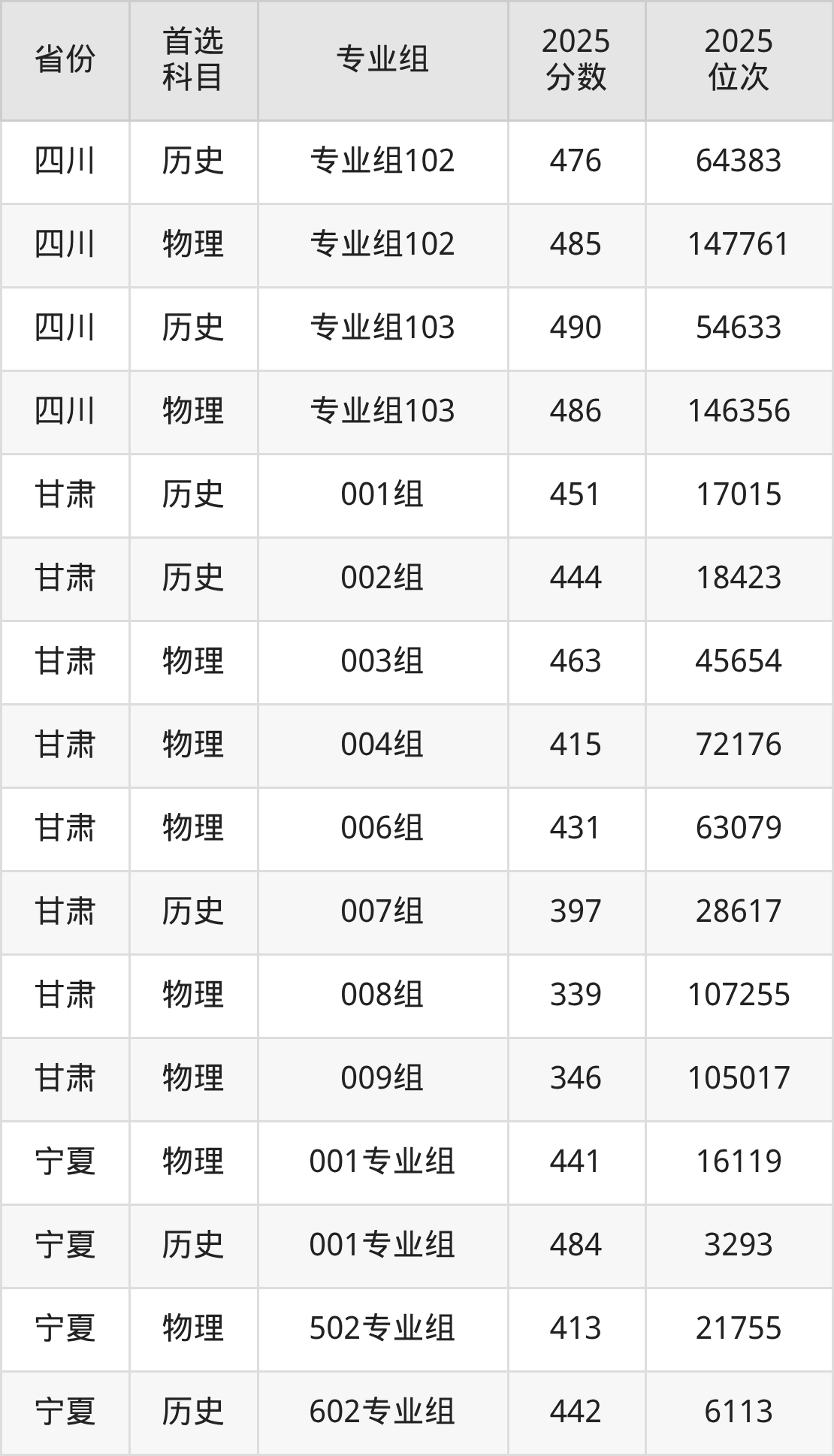 25.宁夏:历史类442分、6113位,物理类413分、21755位