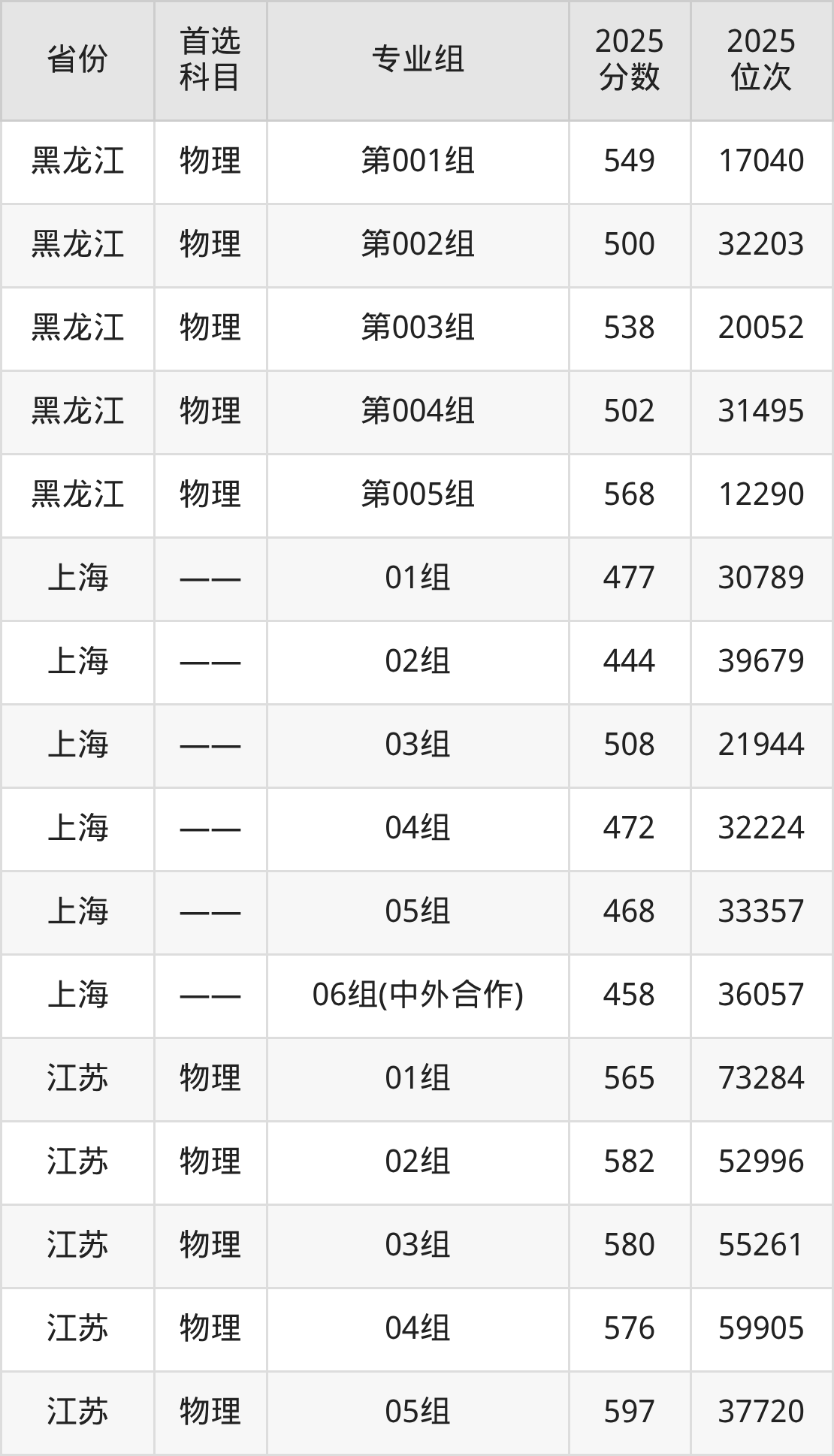 因为大部分地区目前只公布了院校(专业组)分数线,为了方便2026年考生参考,本文就整理出上海应用技术大学在全国各省不同科类的最低分: