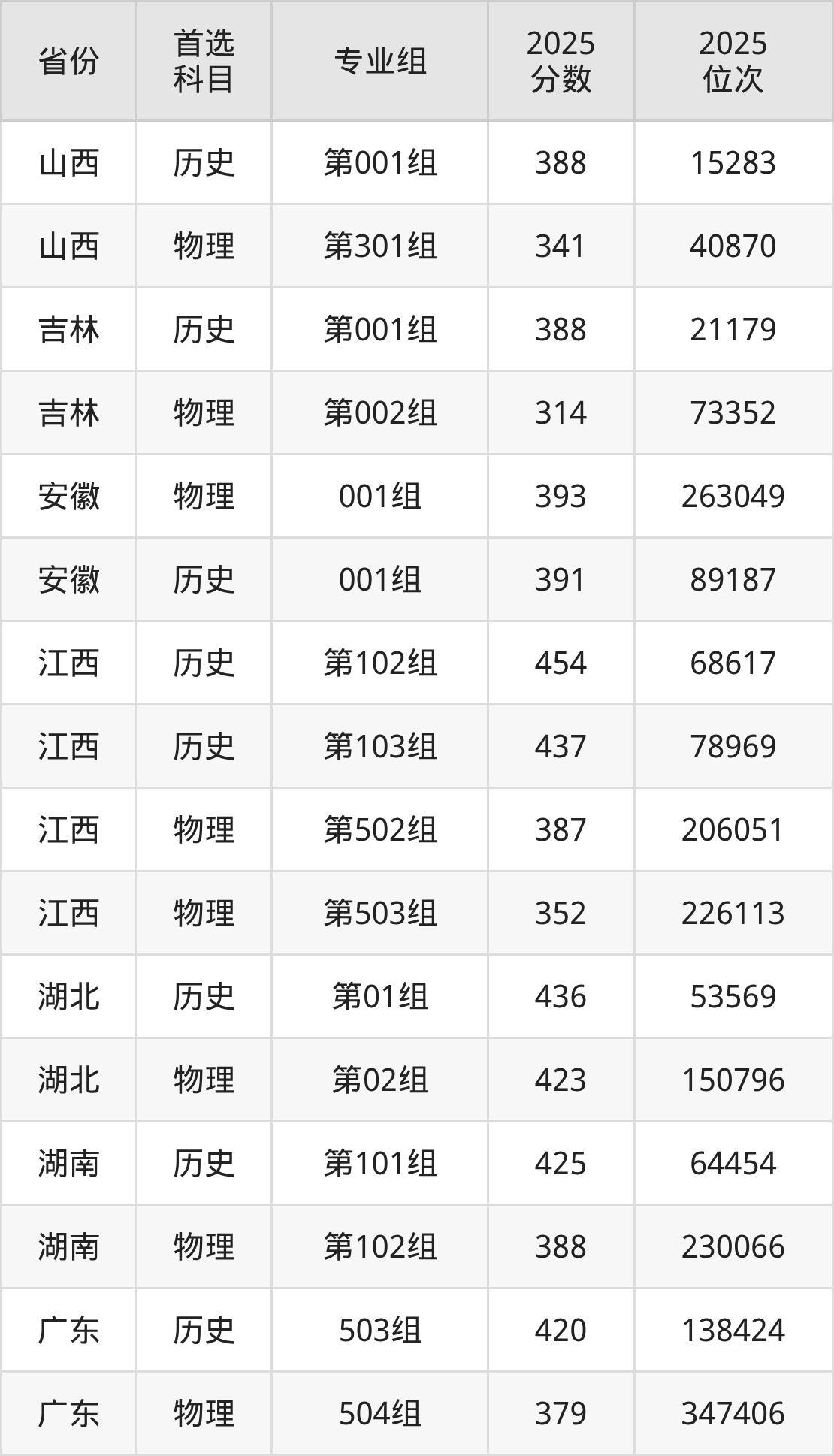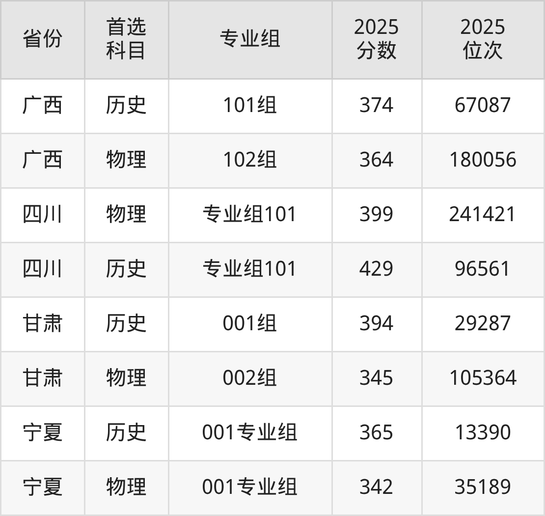 因为大部分地区目前只公布了院校(专业组)分数线,为了方便2026年考生参考,本文就整理出江西司法警官职业学院在全国各省不同科类的最低分: