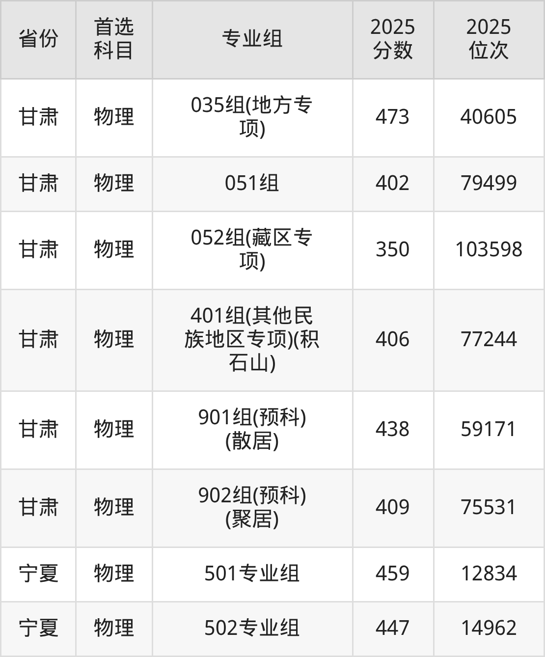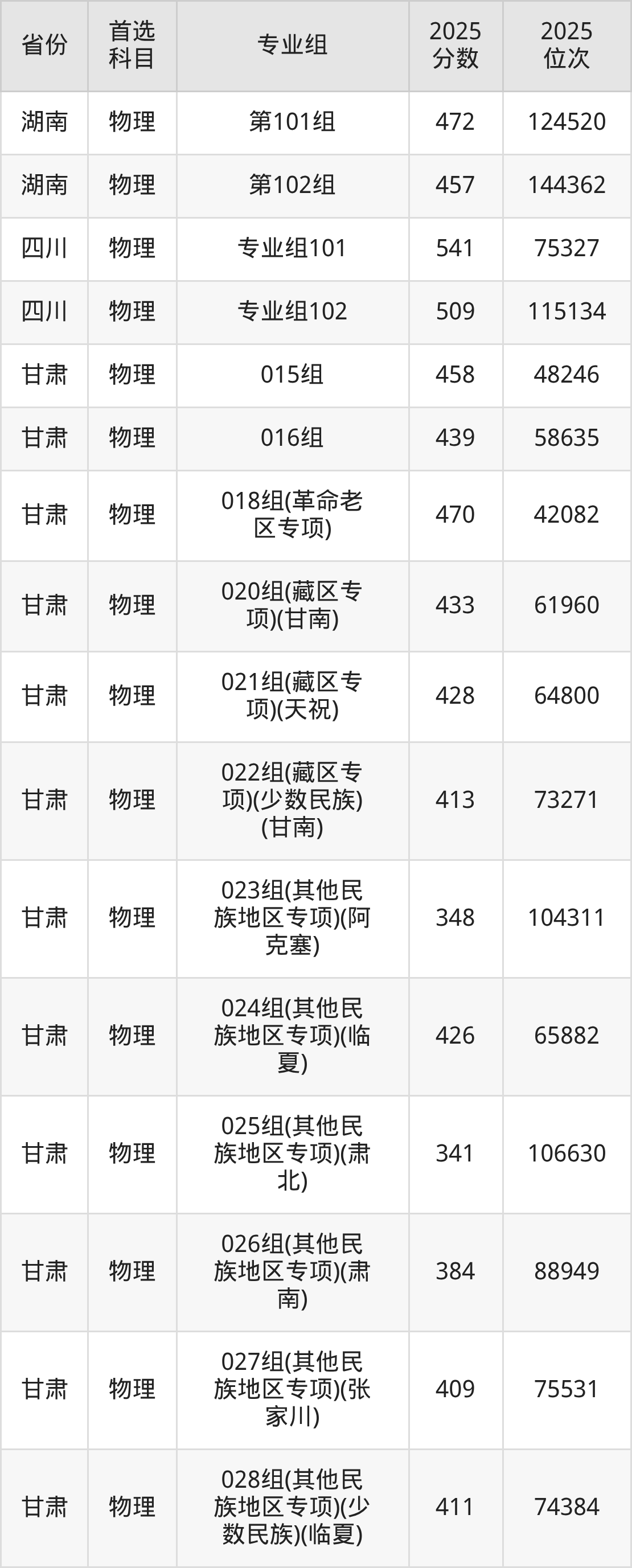 因为大部分地区目前只公布了院校(专业组)分数线,为了方便2026年考生参考,本文就整理出甘肃医学院在全国各省不同科类的最低分: