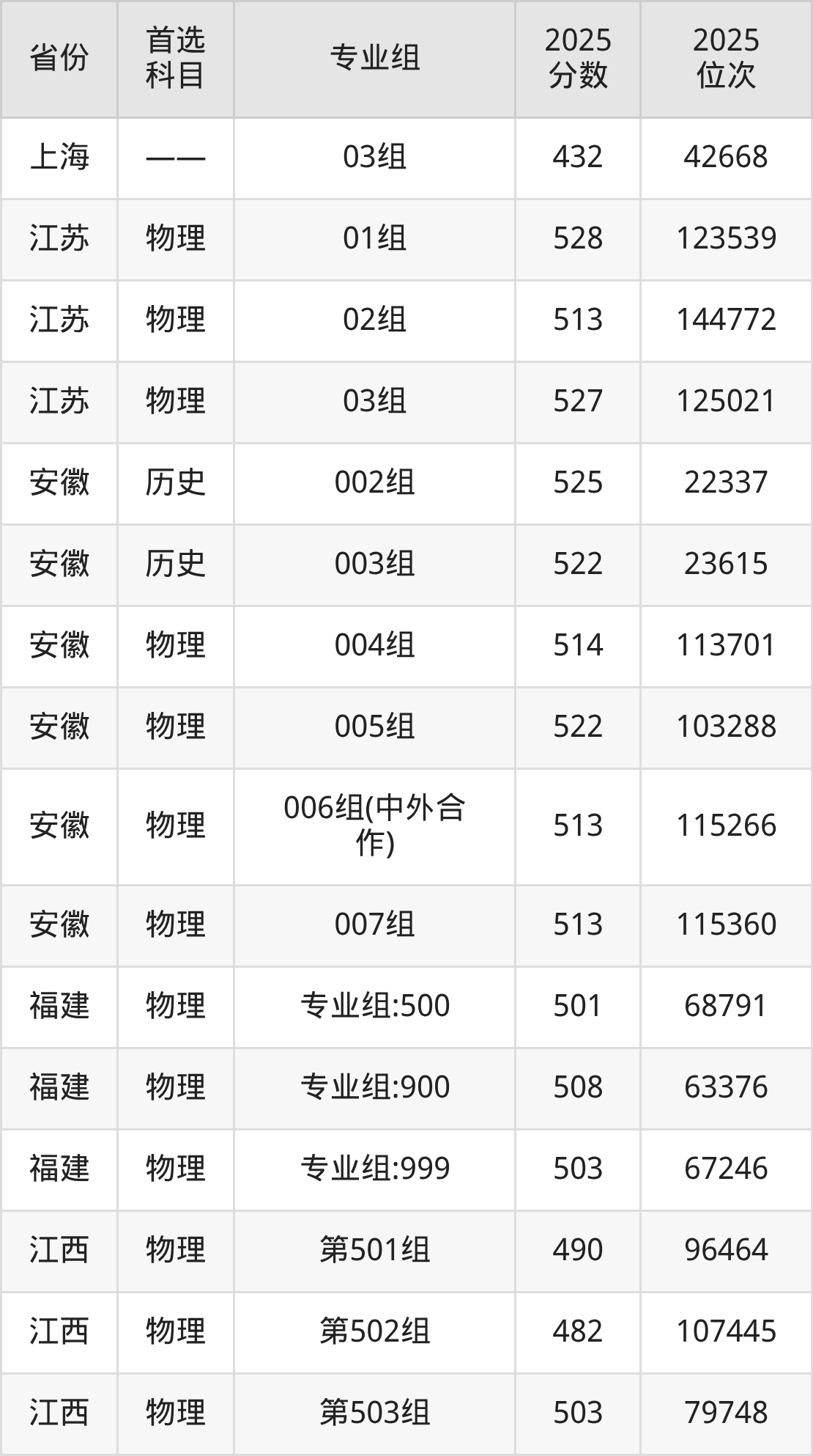 因为大部分地区目前只公布了院校(专业组)分数线,为了方便2026年考生参考,本文就整理出安徽科技学院在全国各省不同科类的最低分: