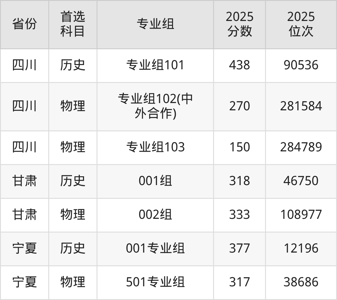 因为大部分地区目前只公布了院校(专业组)分数线,为了方便2026年考生参考,本文就整理出绵阳职业技术学院在全国各省不同科类的最低分: