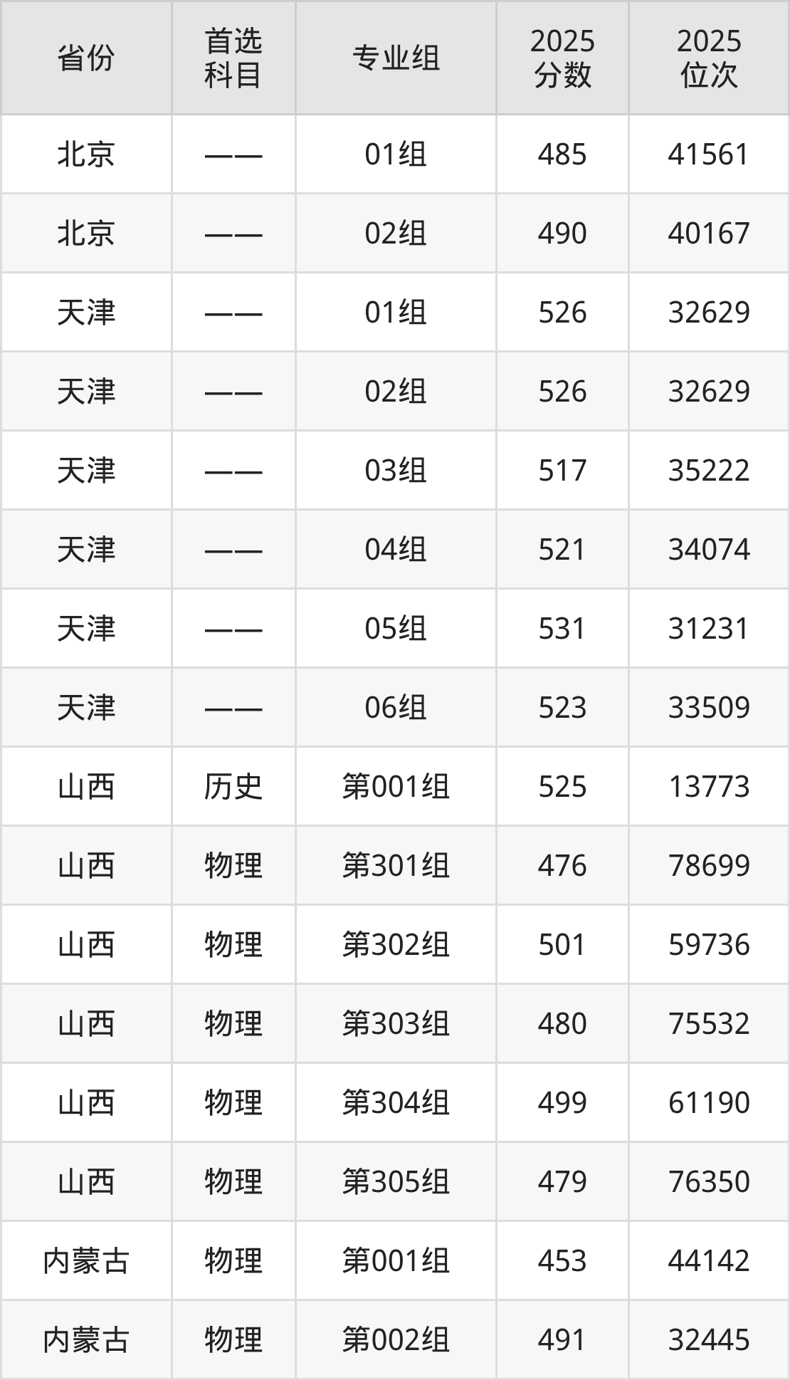 因为大部分地区目前只公布了院校(专业组)分数线,为了方便2026年考生参考,本文就整理出天津农学院在全国各省不同科类的最低分: