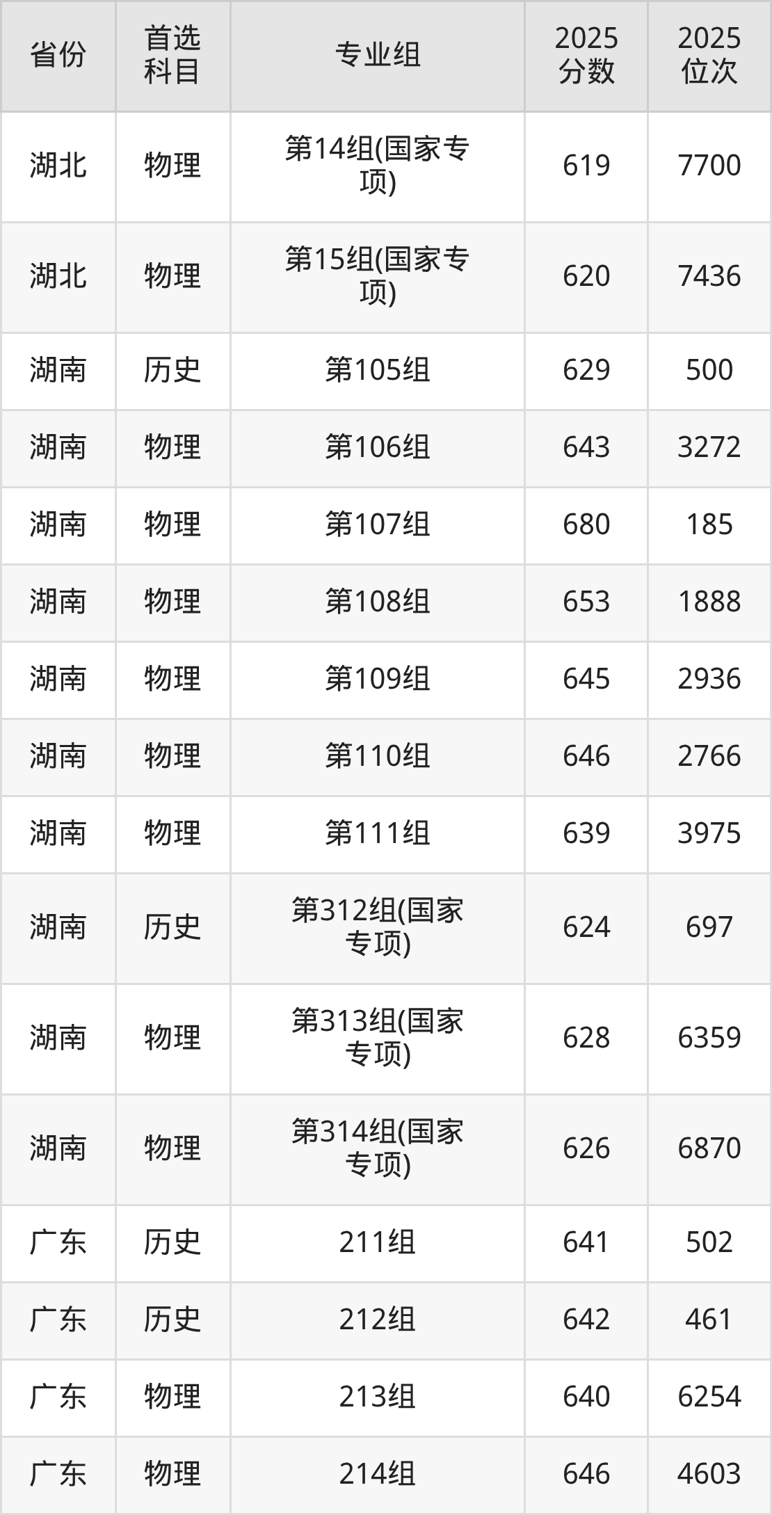 因为大部分地区目前只公布了院校(专业组)分数线,为了方便2026年考生参考,本文就整理出武汉大学在全国各省不同科类的最低分: