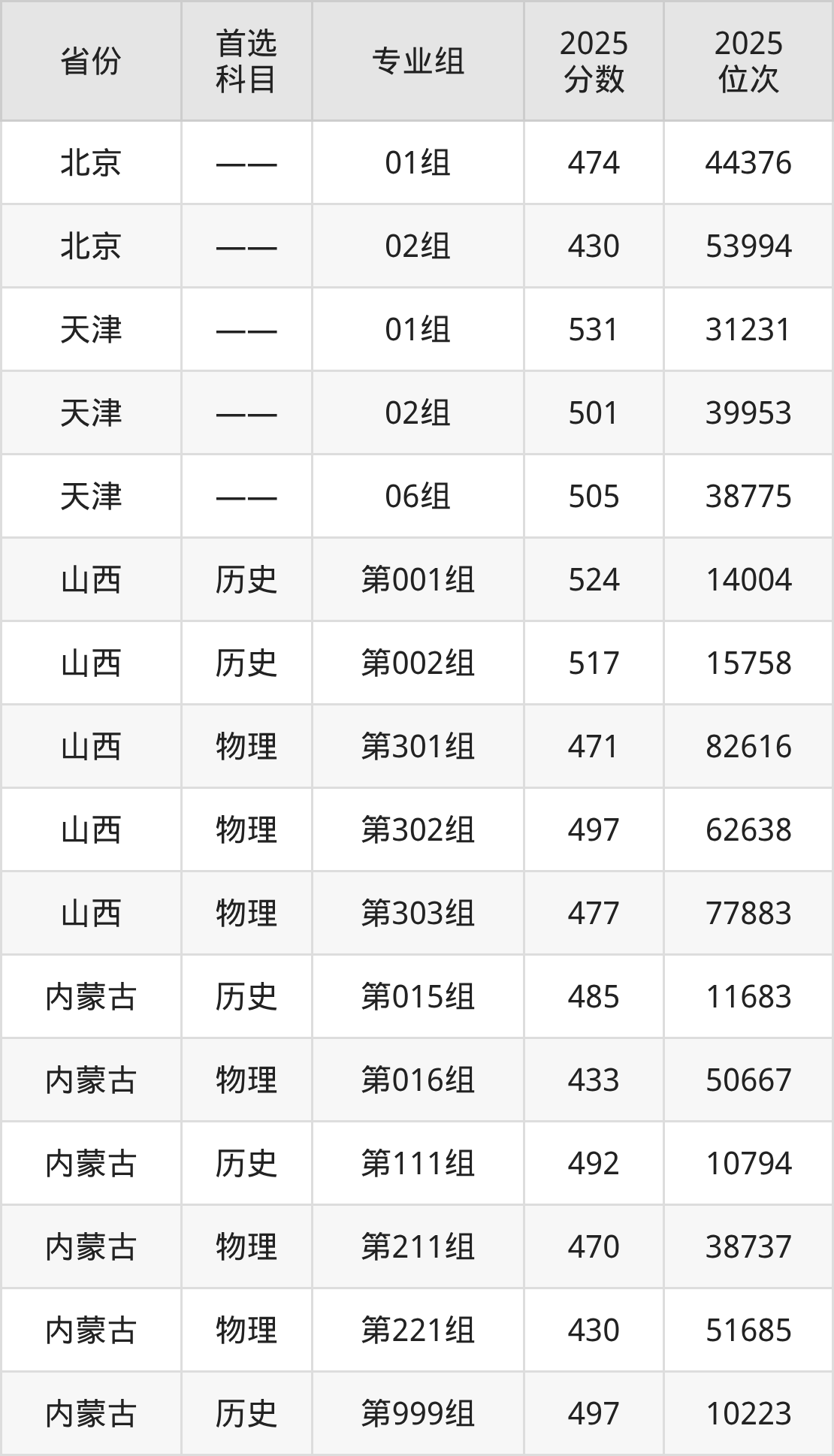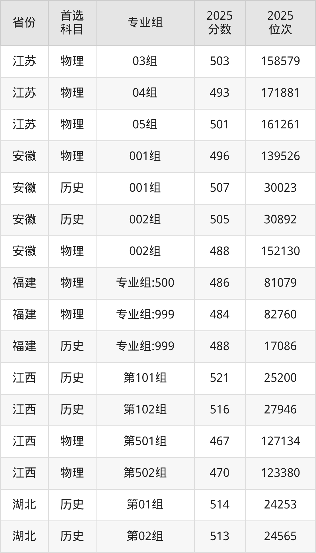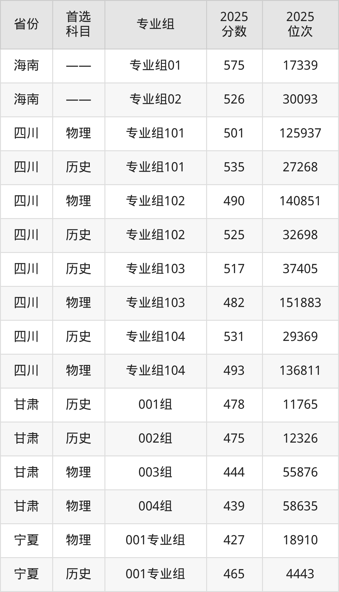 因为大部分地区目前只公布了院校(专业组)分数线,为了方便2026年考生参考,本文就整理出新疆政法学院在全国各省不同科类的最低分:
