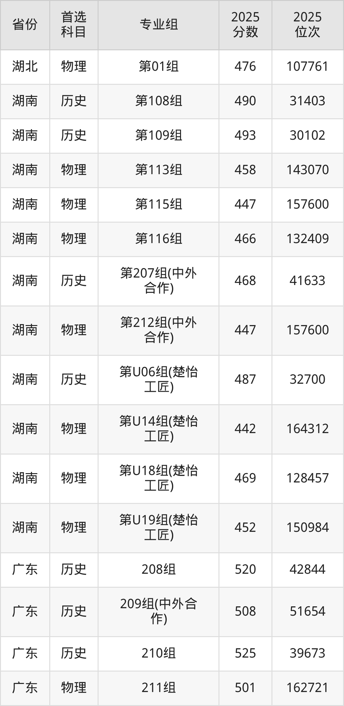 因为大部分地区目前只公布了院校(专业组)分数线,为了方便2026年考生参考,本文就整理出湖南人文科技学院在全国各省不同科类的最低分: