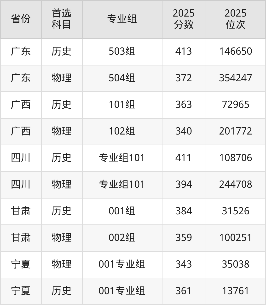 13.广东:物理类372分、354247位,历史类413分、146650位