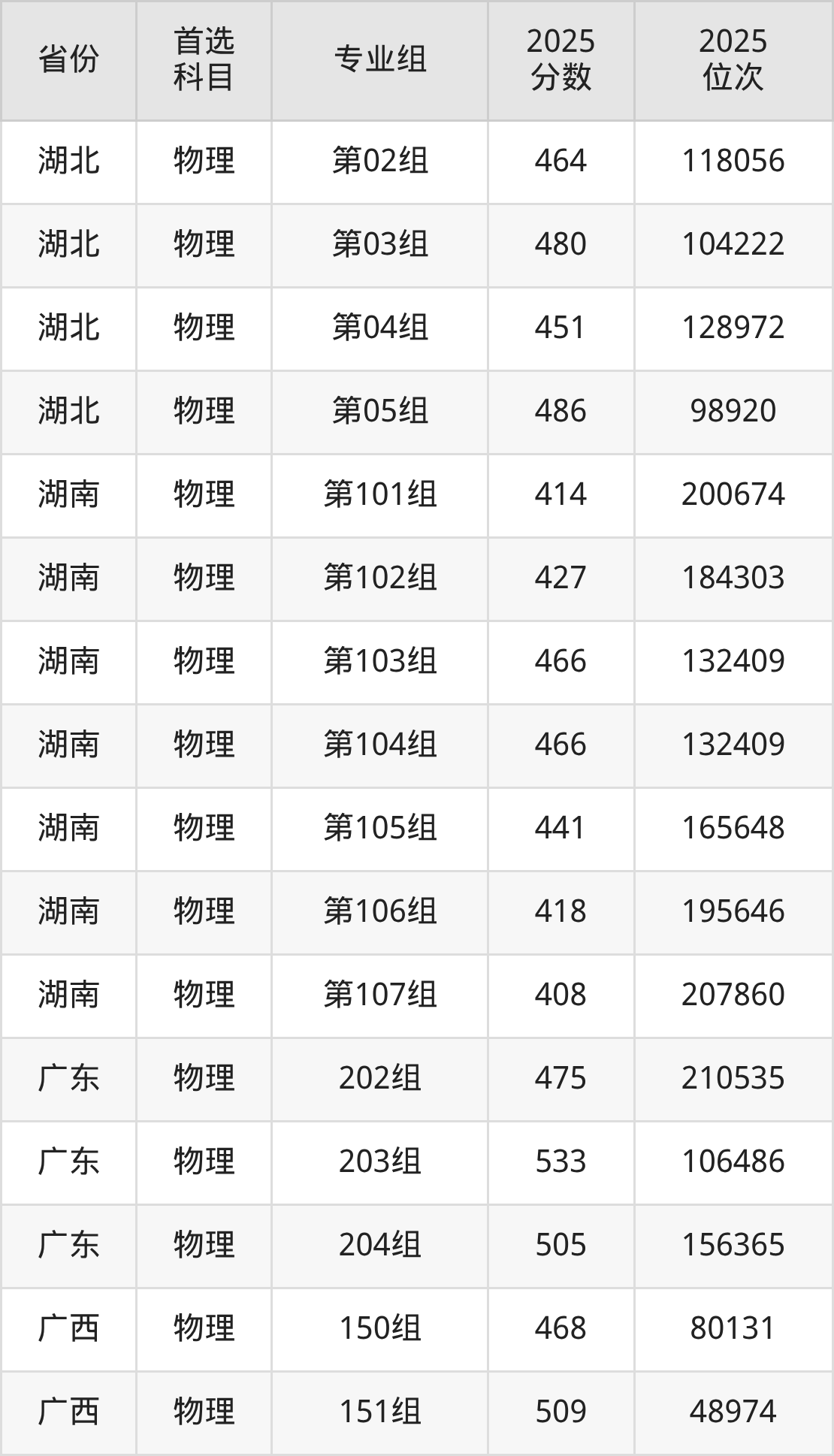 15.湖南:物理类408分、207860位