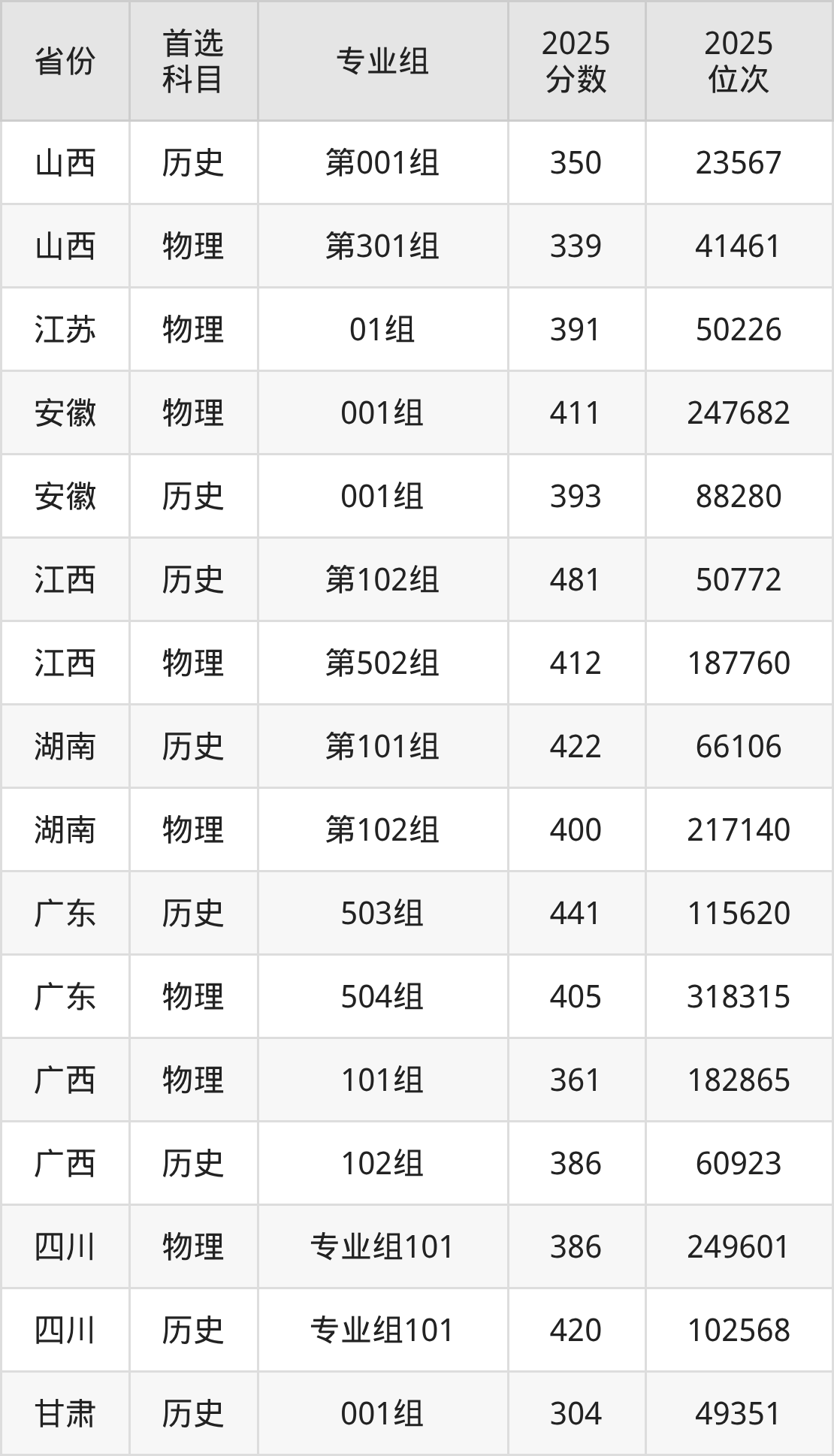 因为大部分地区目前只公布了院校(专业组)分数线,为了方便2026年考生参考,本文就整理出福建船政交通职业学院在全国各省不同科类的最低分: