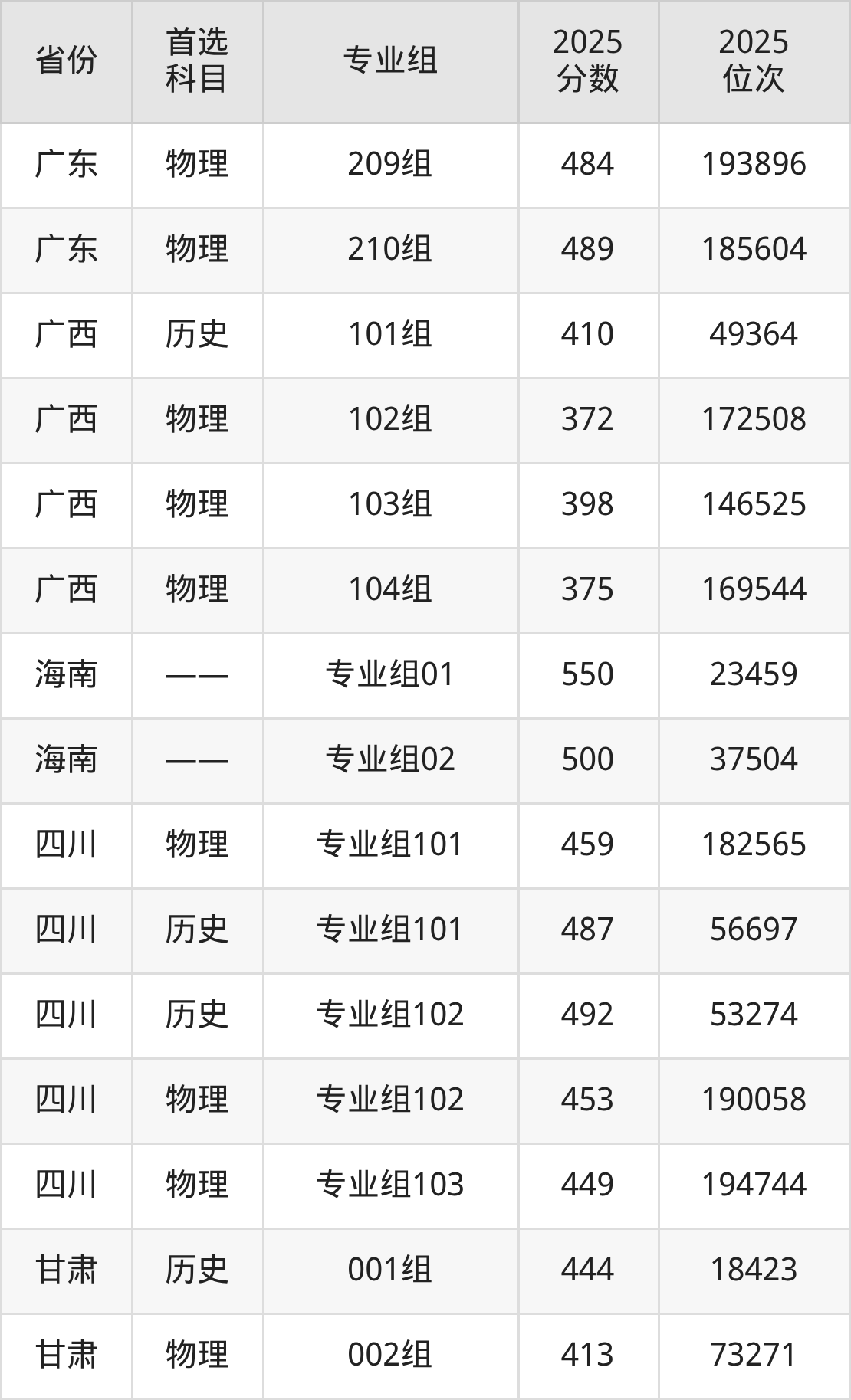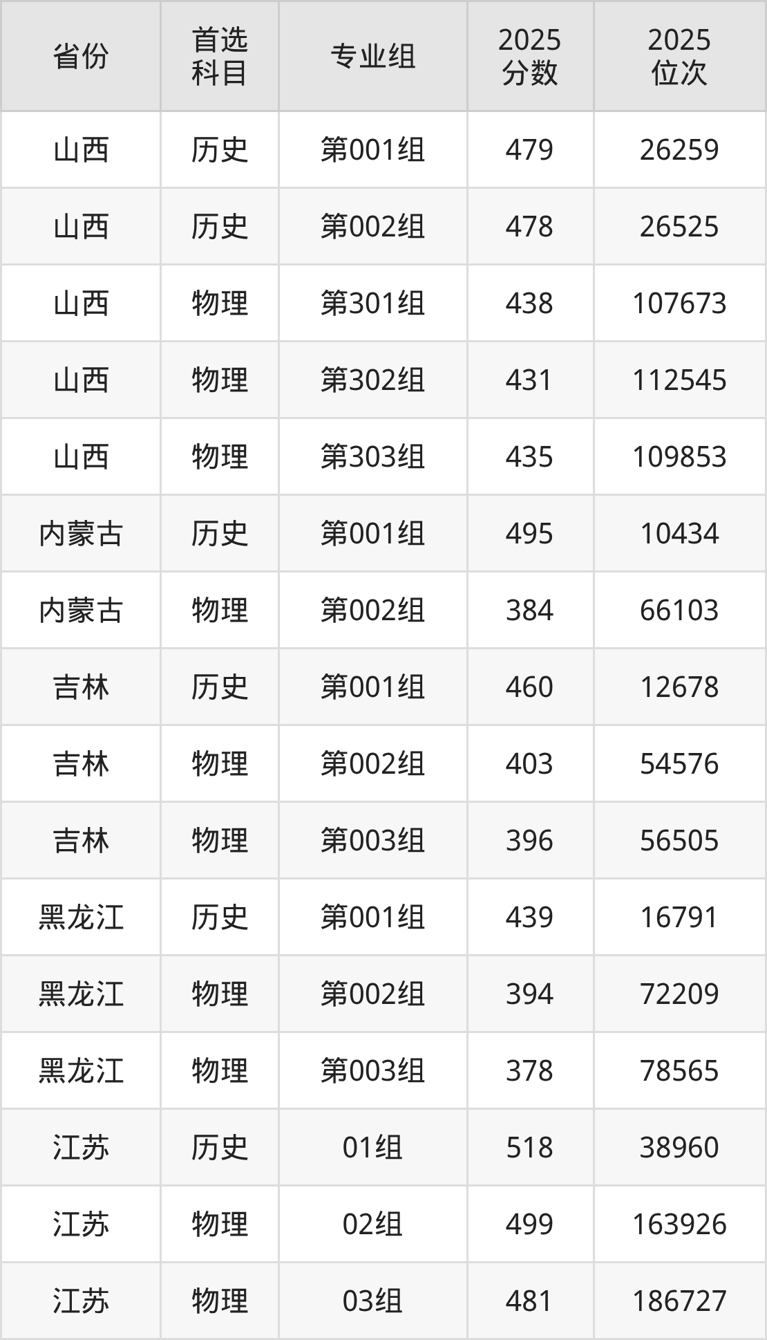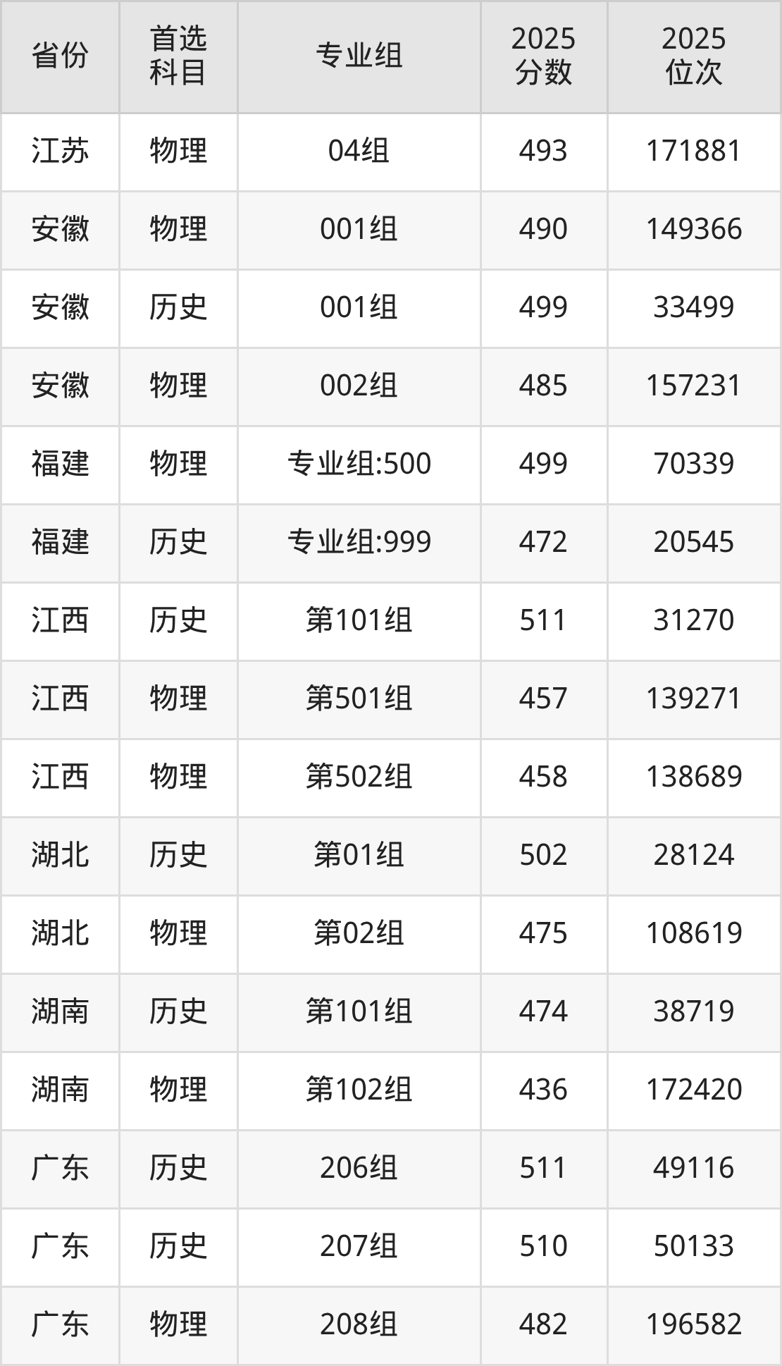 因为大部分地区目前只公布了院校(专业组)分数线,为了方便2026年考生参考,本文就整理出扬州大学广陵学院在全国各省不同科类的最低分: