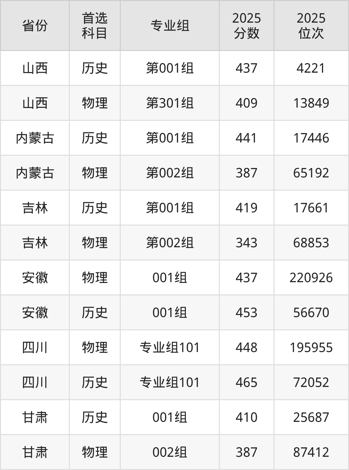 1.山西:物理类409分、13849位,历史类437分、4221位