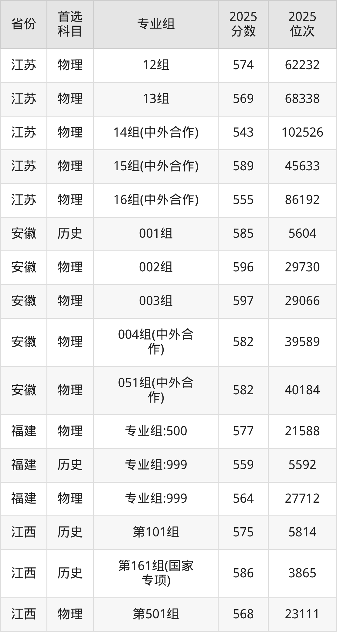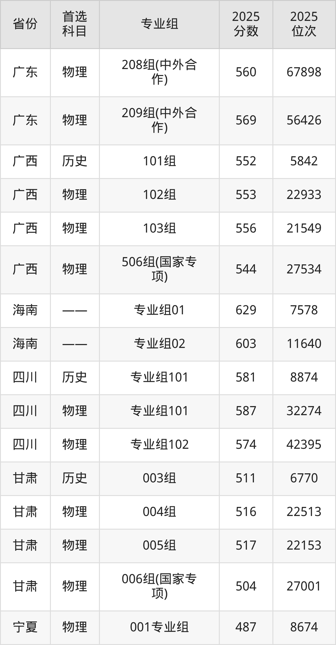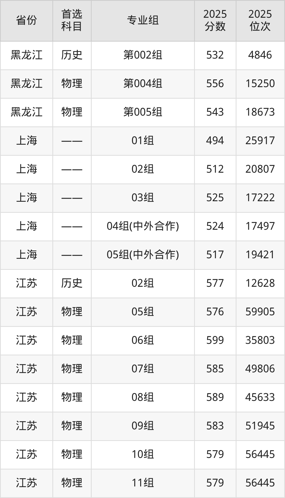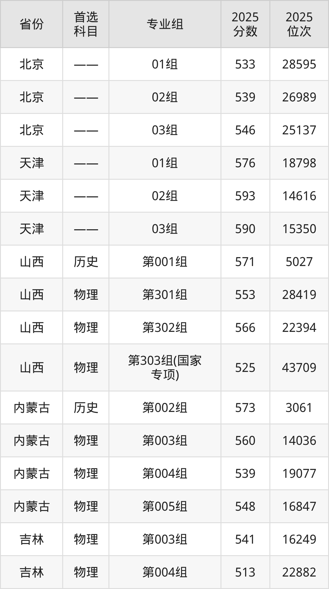 因为大部分地区目前只公布了院校(专业组)分数线,为了方便2026年考生参考,本文就整理出南京工业大学在全国各省不同科类的最低分: