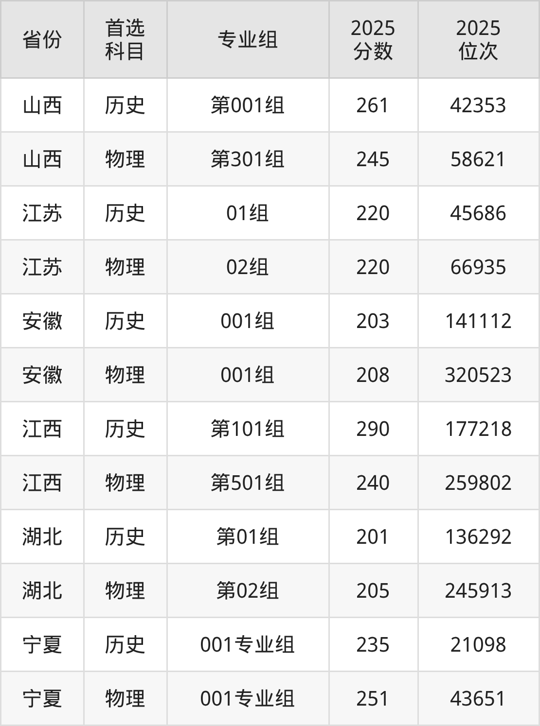 10.宁夏:历史类235分、21098位,物理类251分、43651位