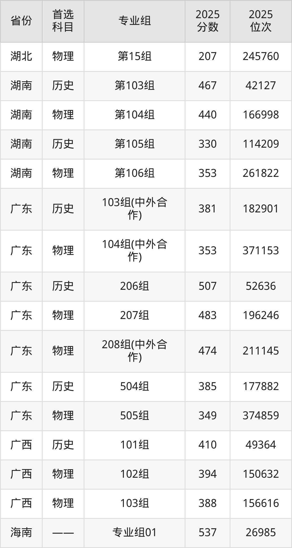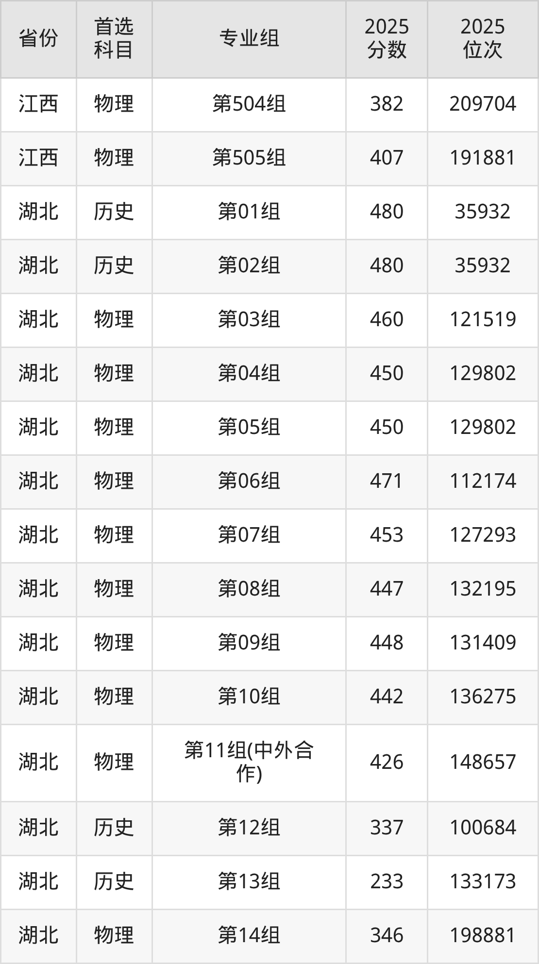 因为大部分地区目前只公布了院校(专业组)分数线,为了方便2026年考生参考,本文就整理出武昌理工学院在全国各省不同科类的最低分: