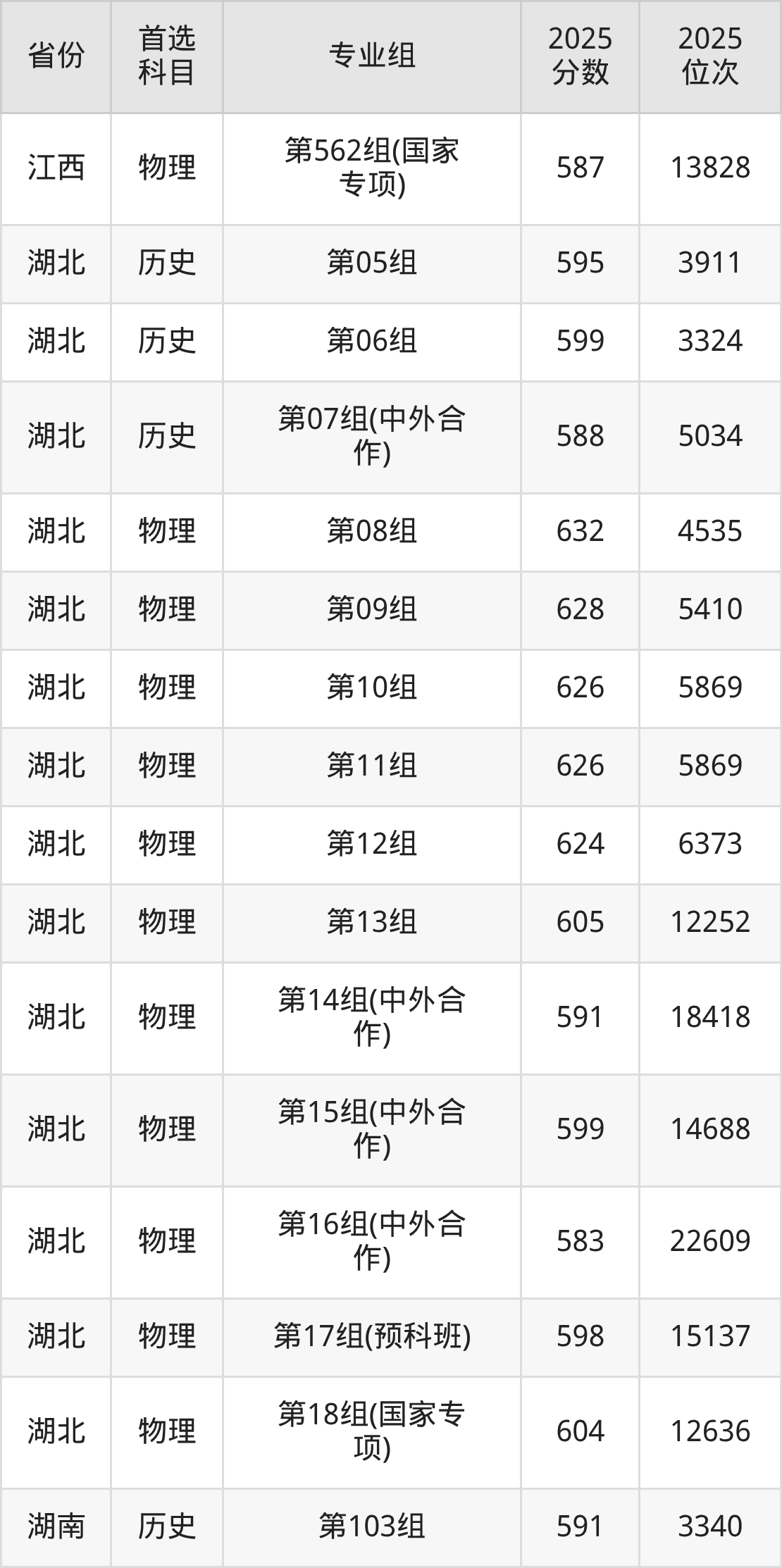 因为大部分地区目前只公布了院校(专业组)分数线,为了方便2026年考生参考,本文就整理出武汉理工大学在全国各省不同科类的最低分: