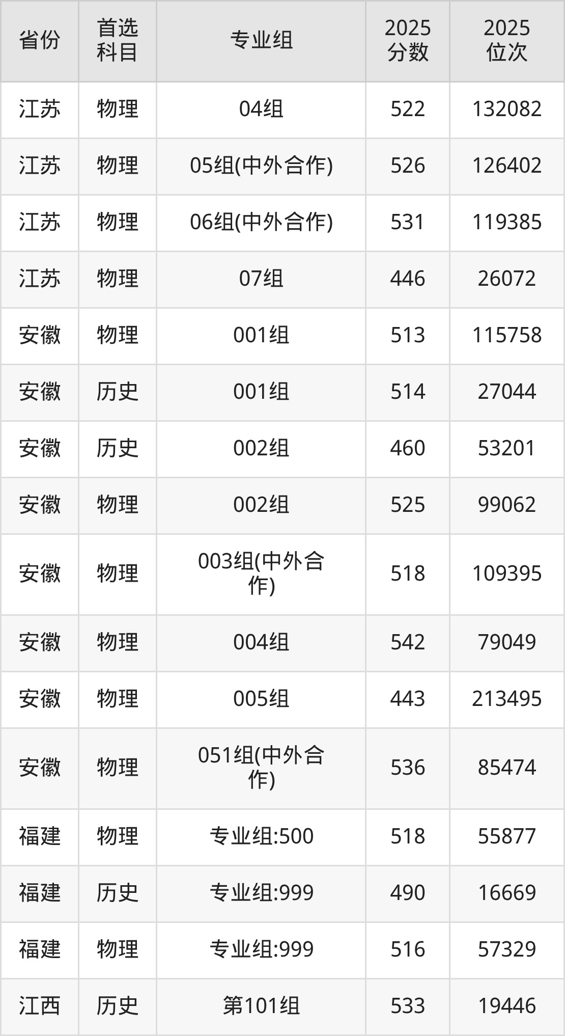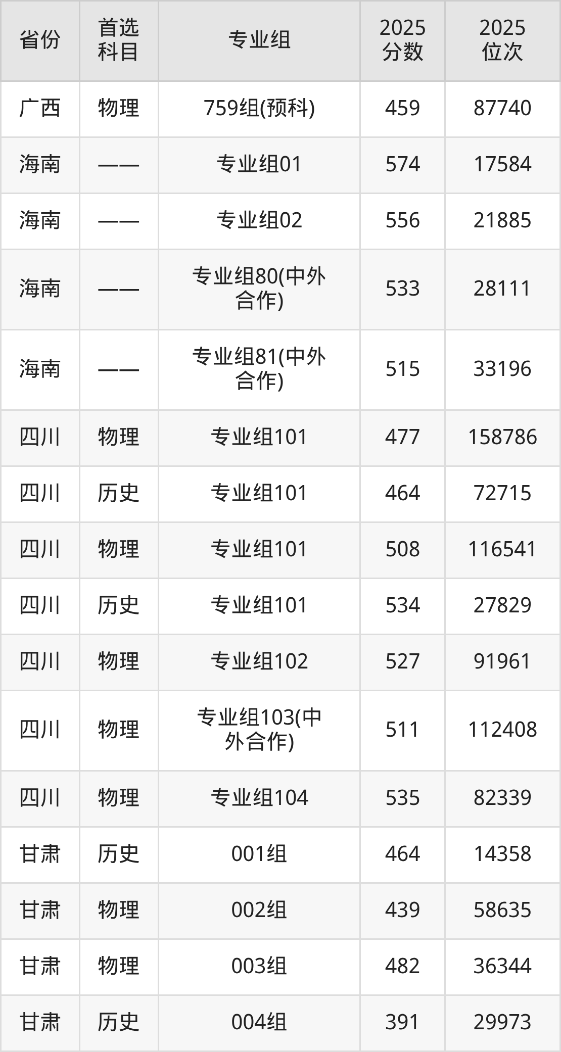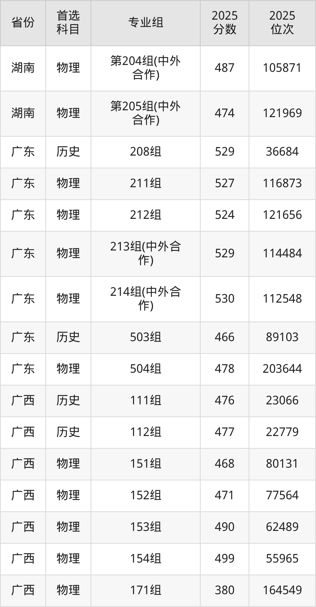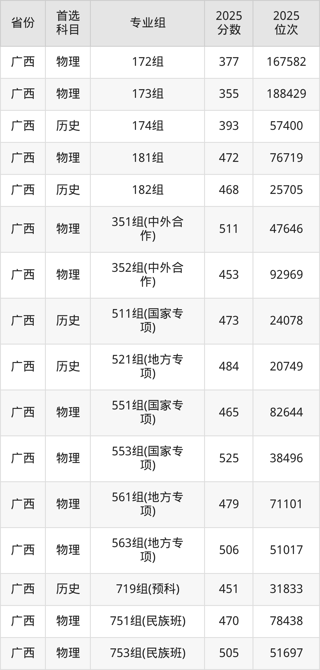 因为大部分地区目前只公布了院校(专业组)分数线,为了方便2026年考生参考,本文就整理出桂林理工大学在全国各省不同科类的最低分: