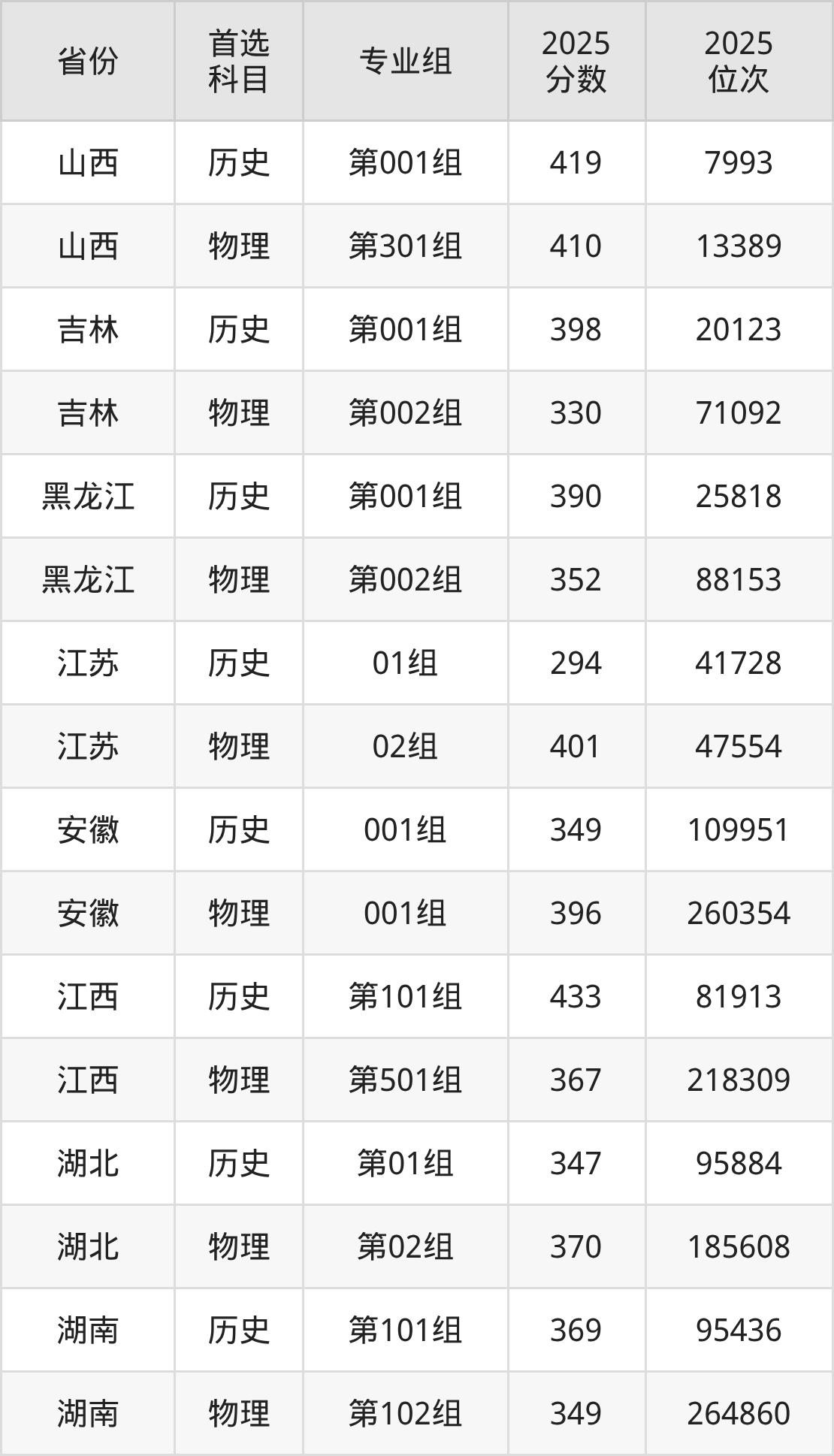 因为大部分地区目前只公布了院校(专业组)分数线,为了方便2026年考生参考,本文就整理出秦皇岛职业技术学院在全国各省不同科类的最低分: