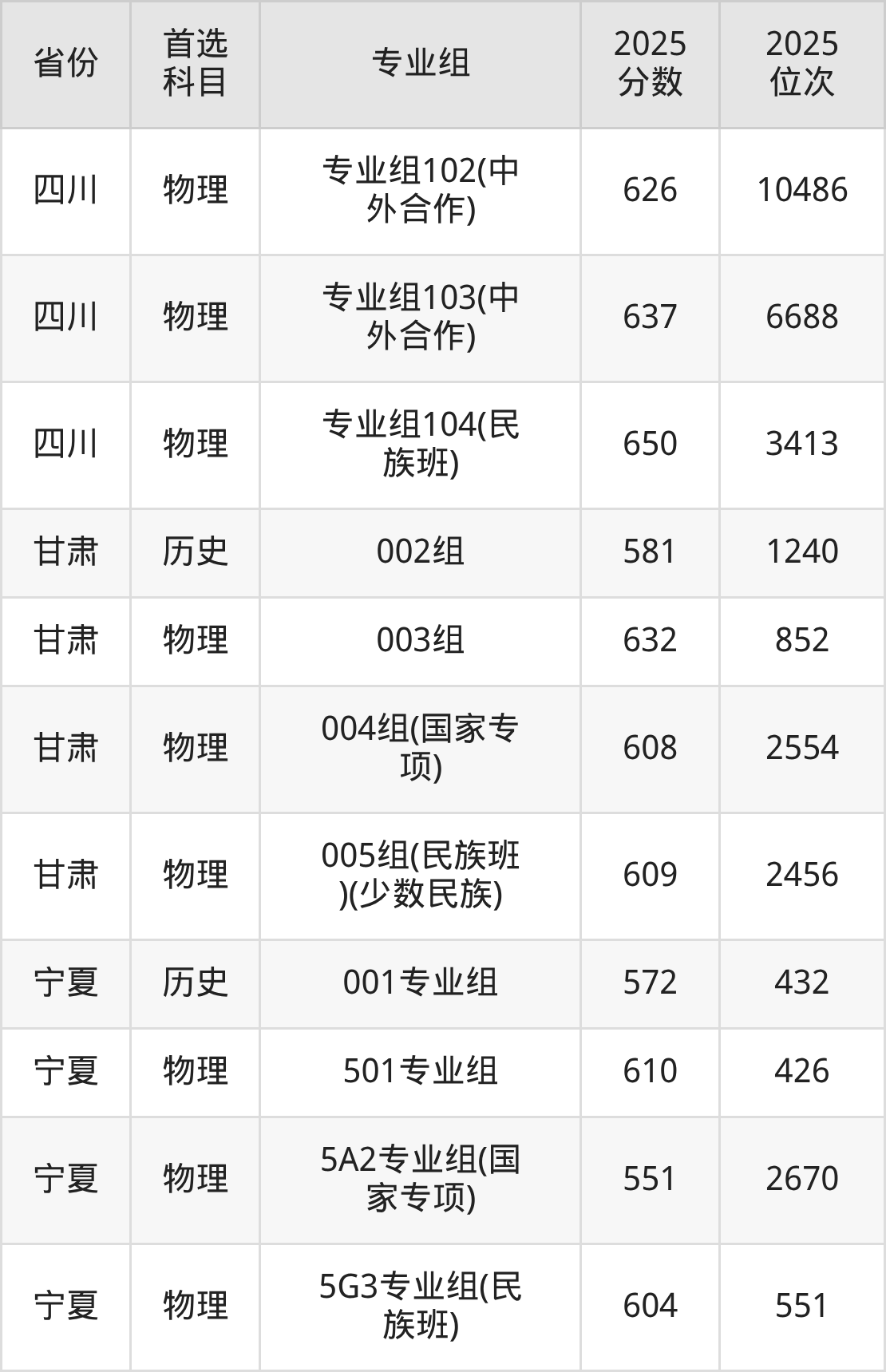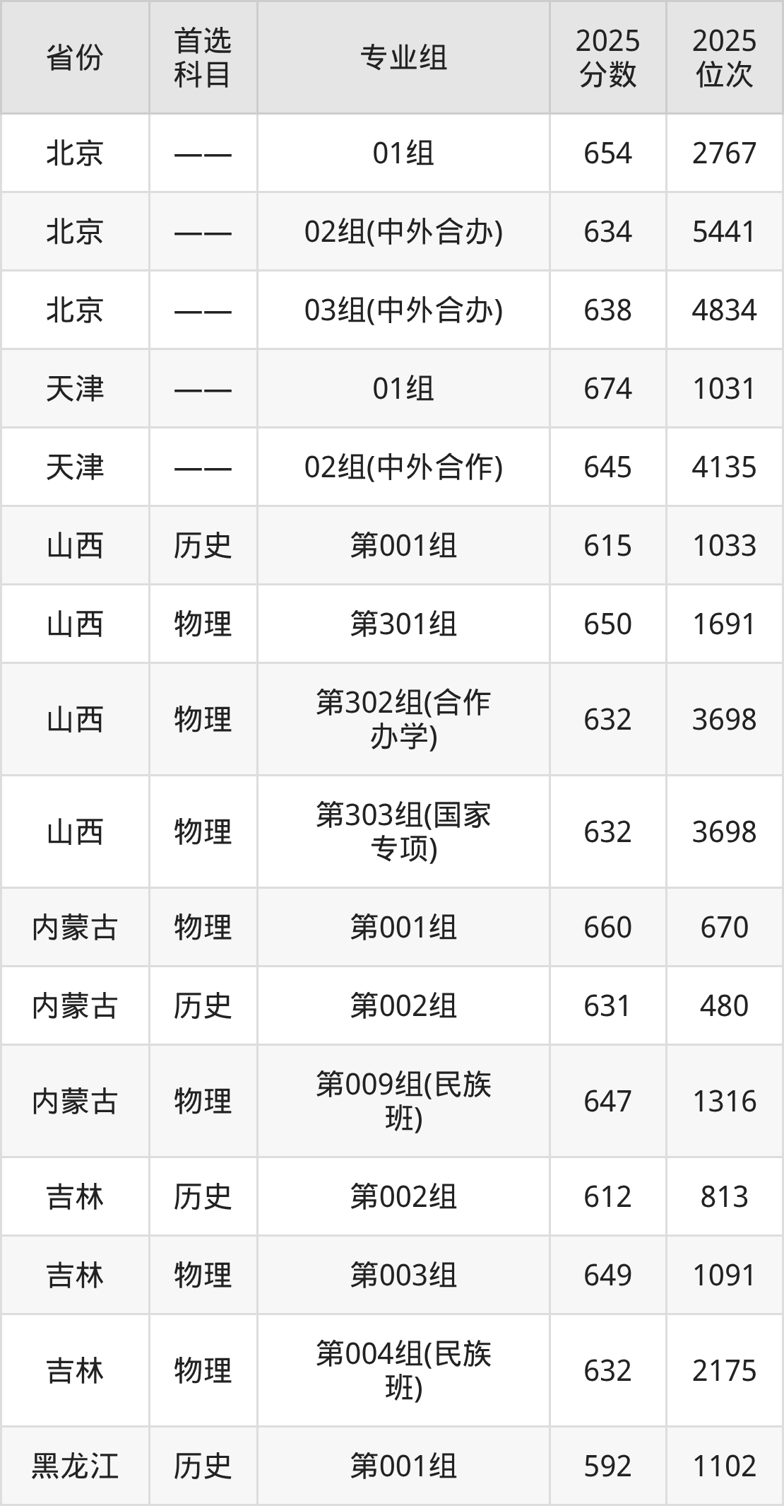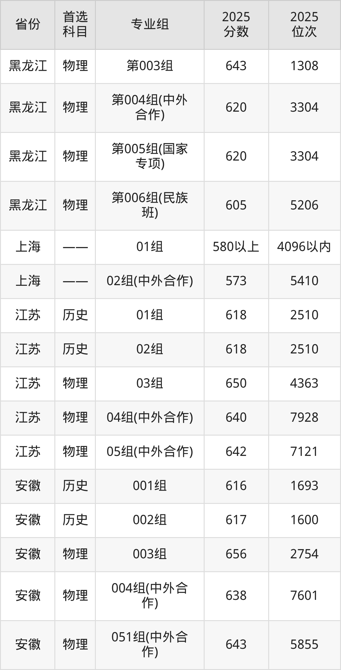 因为大部分地区目前只公布了院校(专业组)分数线,为了方便2026年考生参考,本文就整理出西北工业大学在全国各省不同科类的最低分: