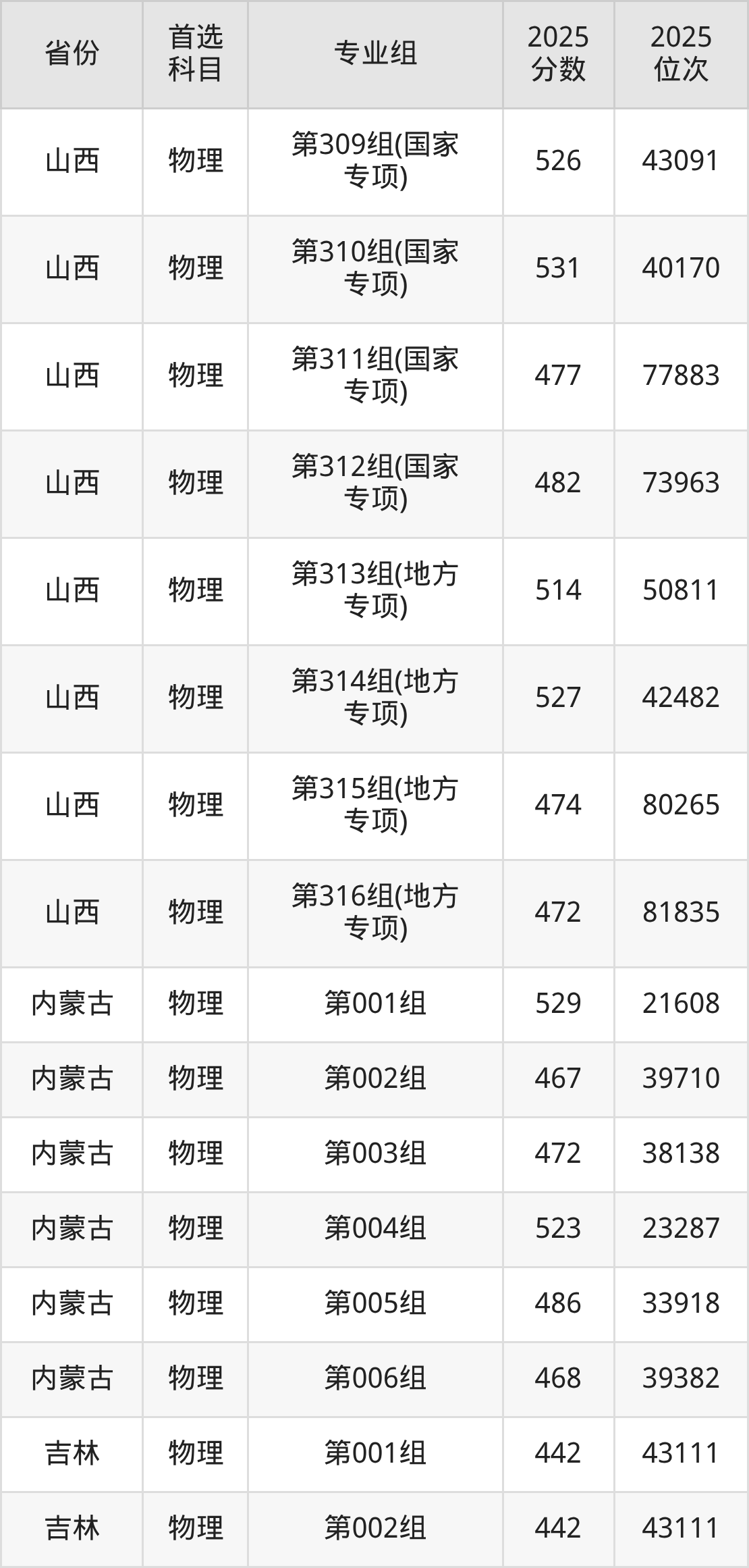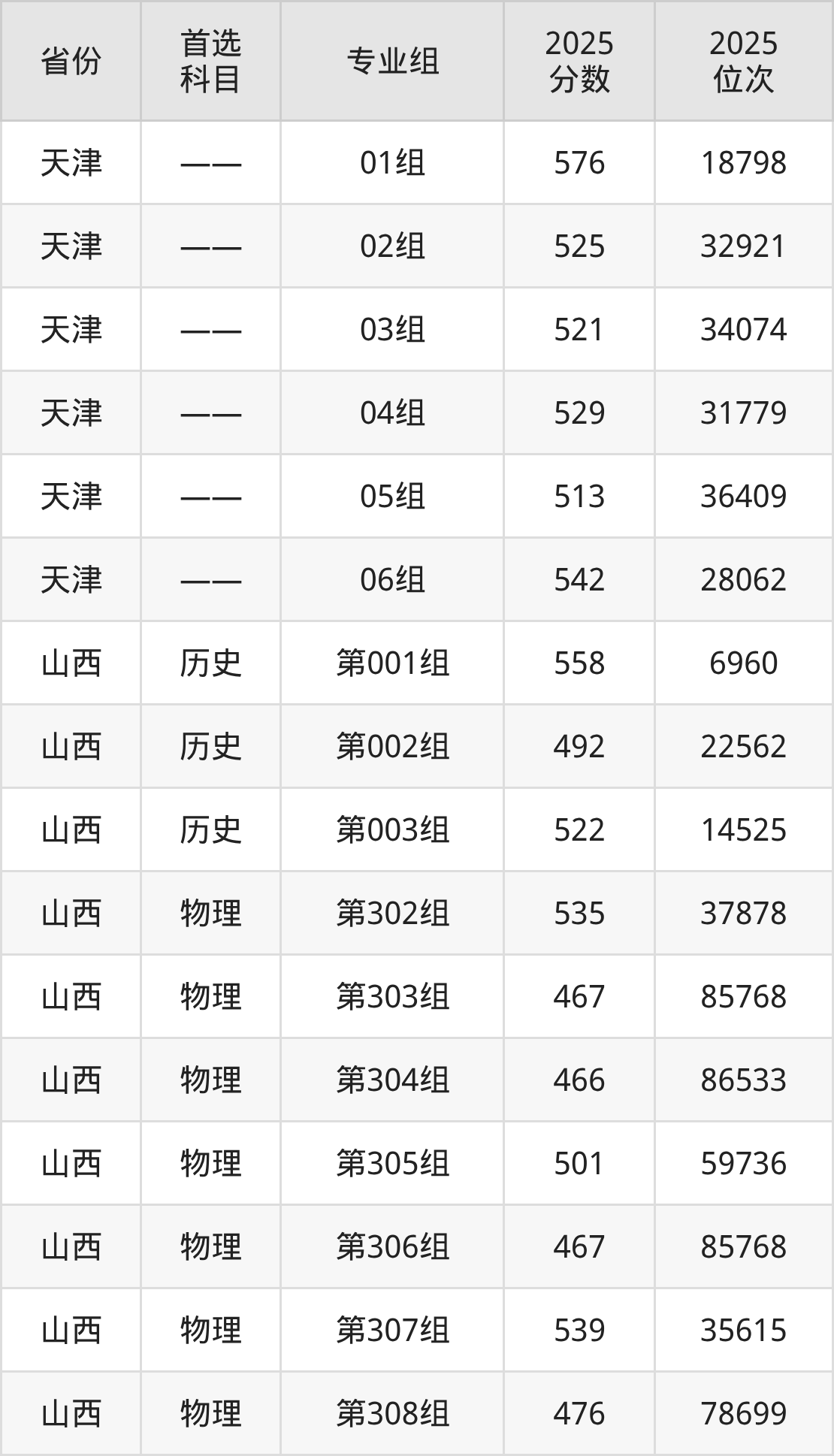 因为大部分地区目前只公布了院校(专业组)分数线,为了方便2026年考生参考,本文就整理出长治医学院在全国各省不同科类的最低分: