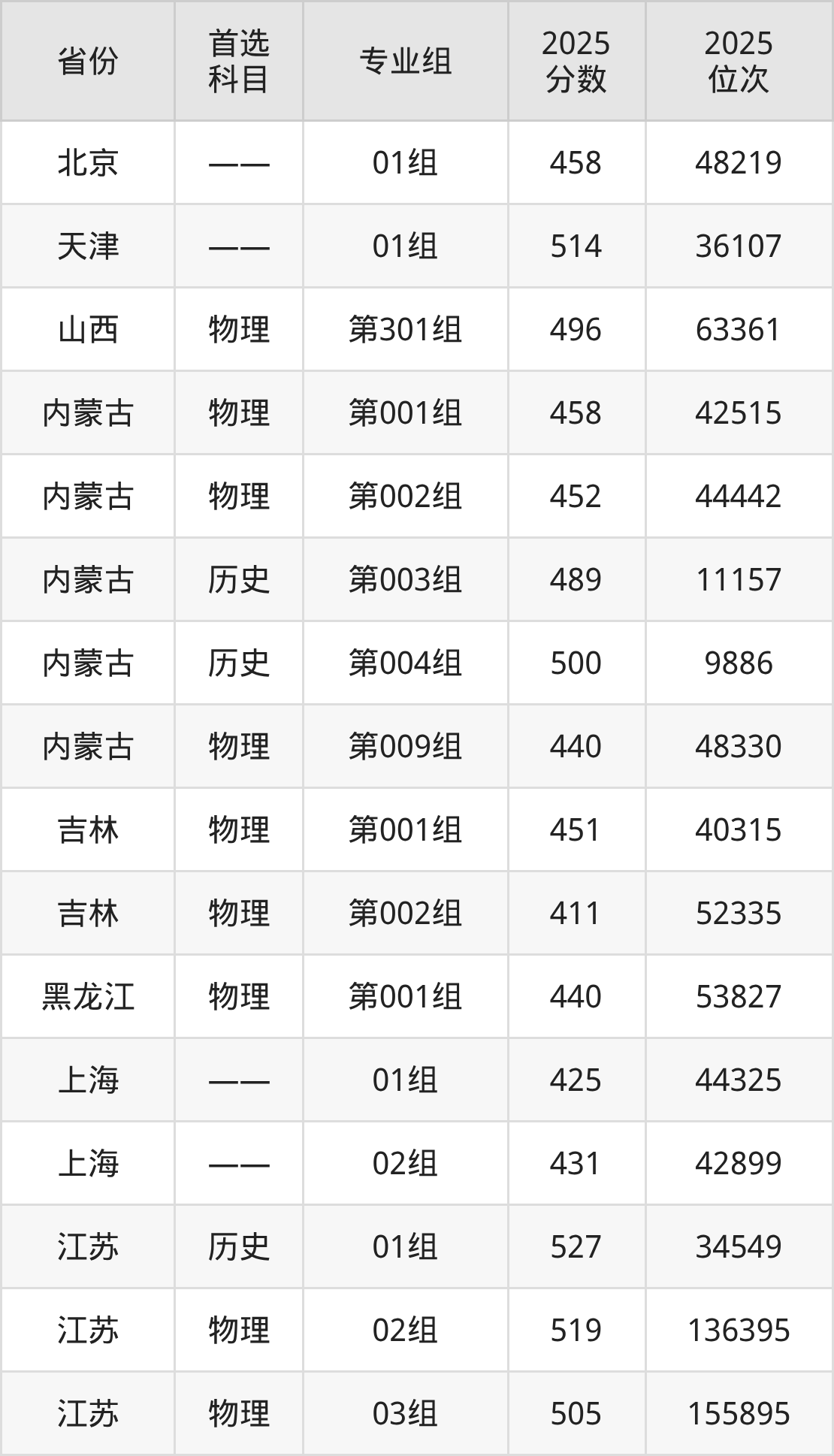 5.内蒙古:历史类489分、11157位,物理类440分、48330位