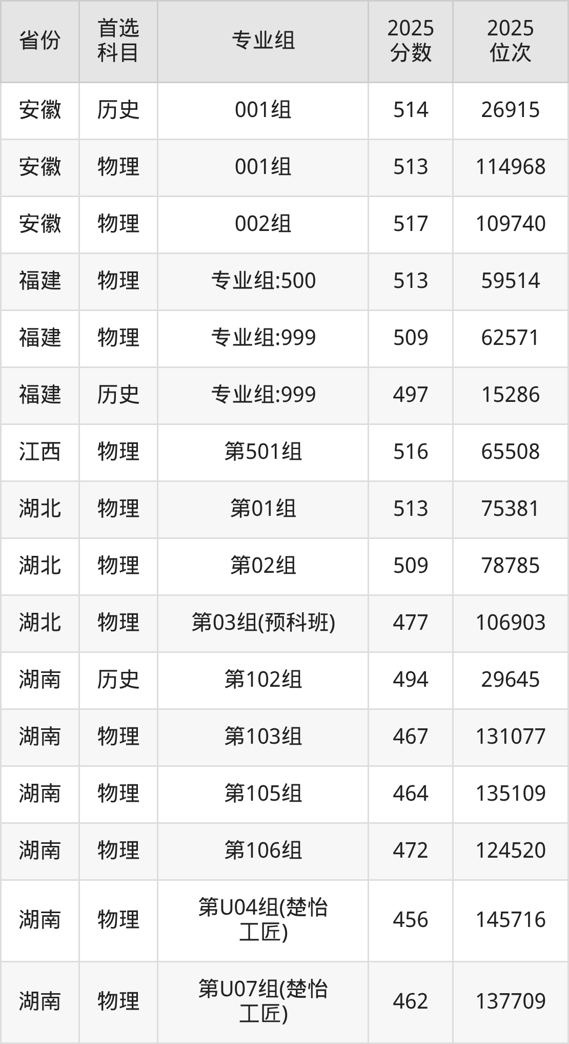 因为大部分地区目前只公布了院校(专业组)分数线,为了方便2026年考生参考,本文就整理出湖南工学院在全国各省不同科类的最低分: