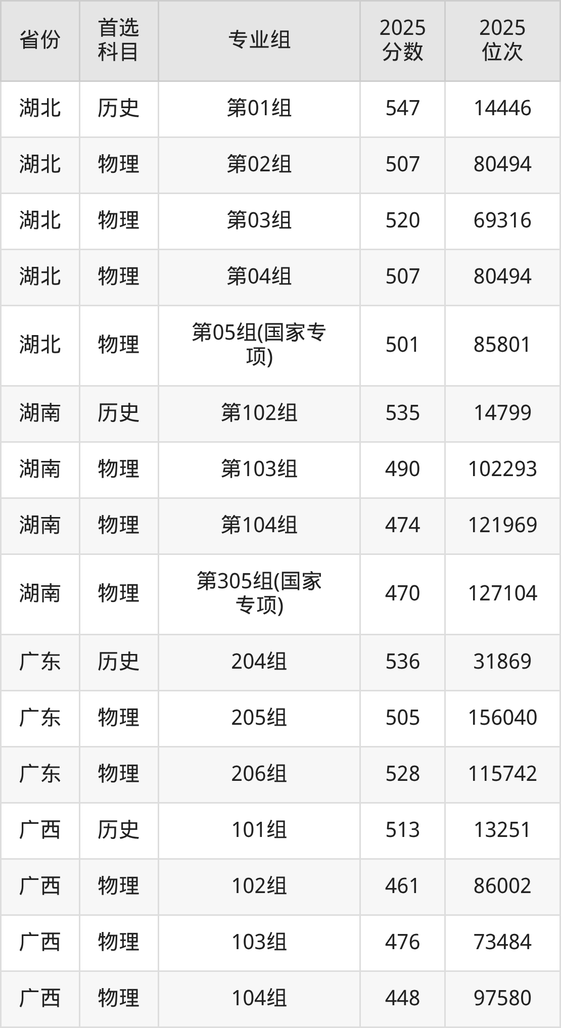 16.湖北:历史类547分、14446位,物理类501分、85801位
