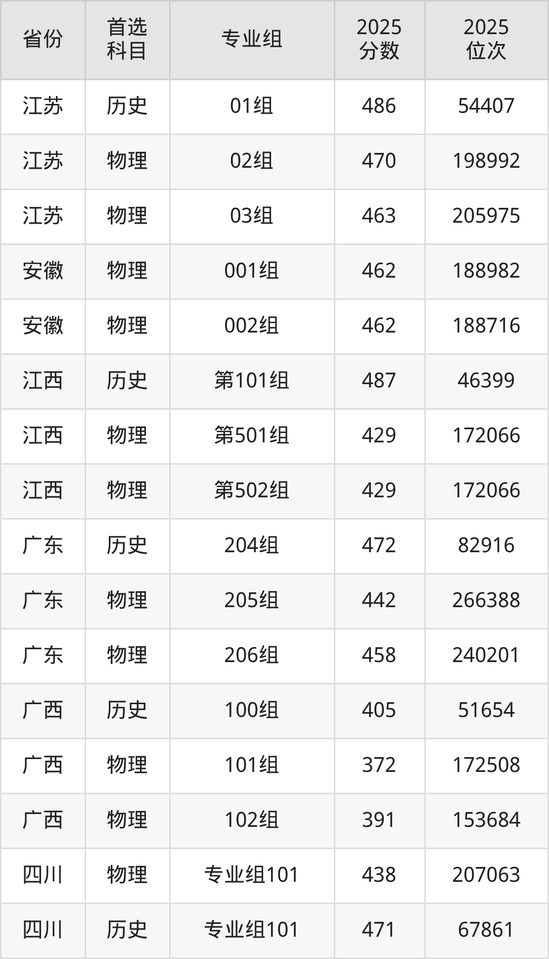 16.四川:物理类438分、207063位,历史类471分、67861位