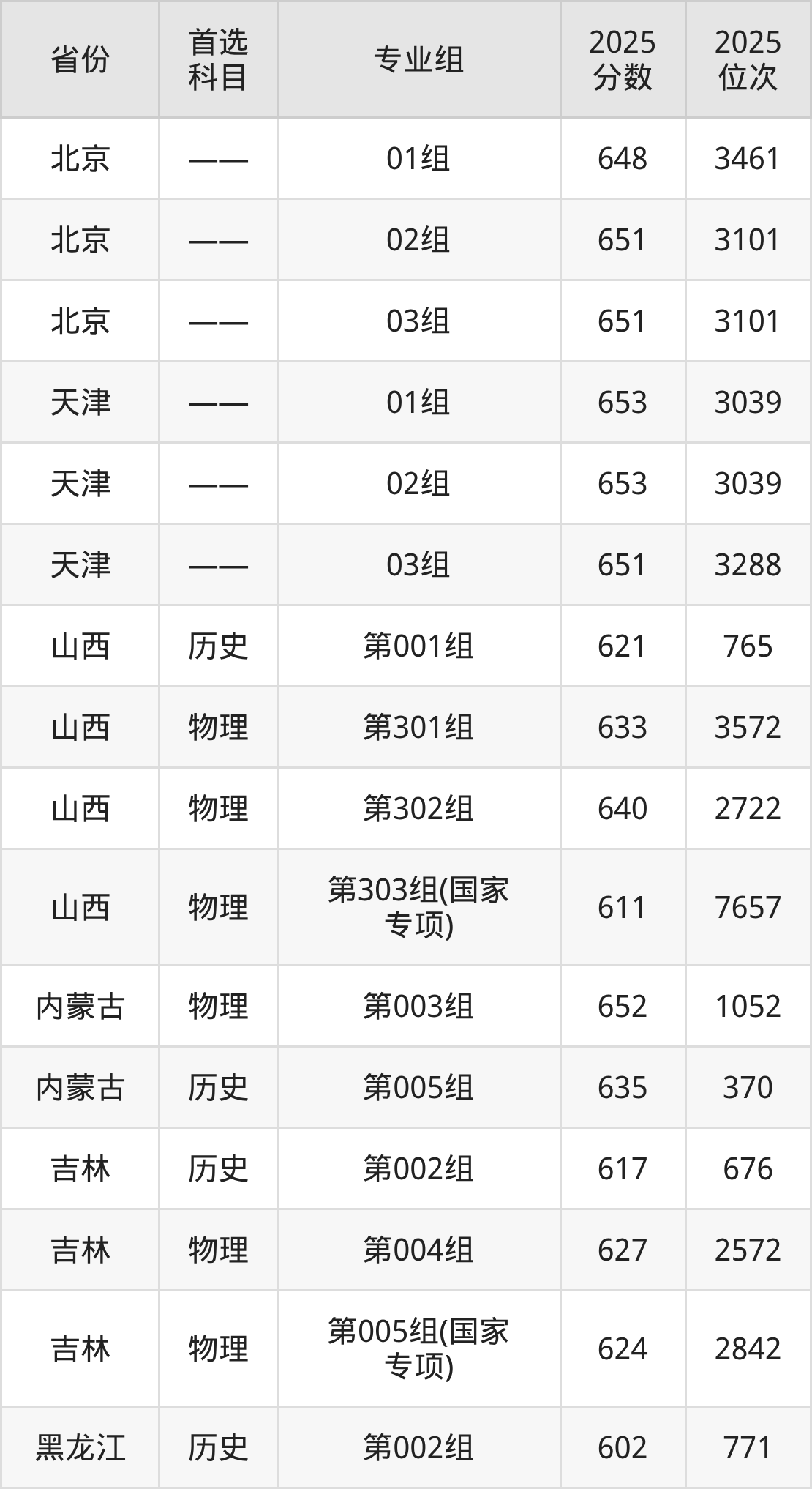 因为大部分地区目前只公布了院校(专业组)分数线,为了方便2026年考生参考,本文就整理出天津大学在全国各省不同科类的最低分: