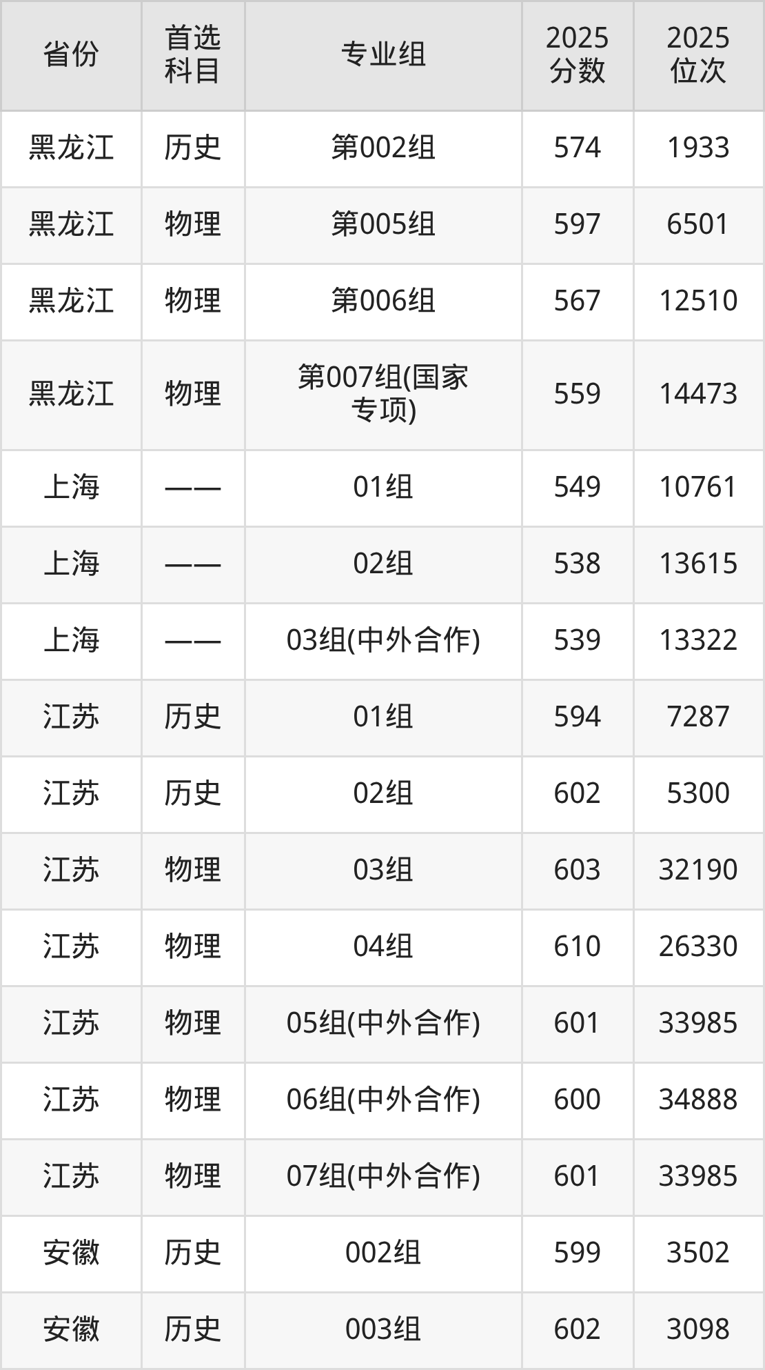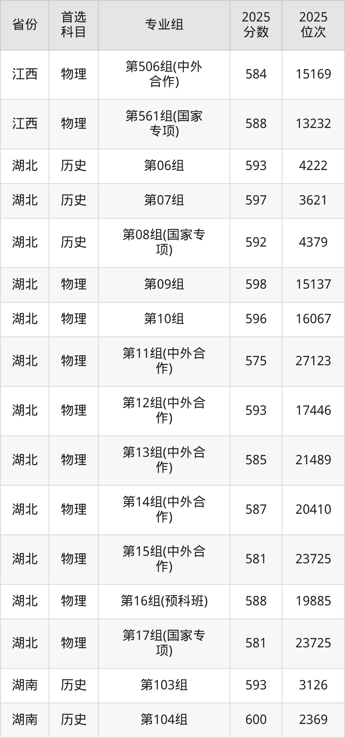 因为大部分地区目前只公布了院校(专业组)分数线,为了方便2026年考生参考,本文就整理出中国地质大学(武汉)在全国各省不同科类的最低分: