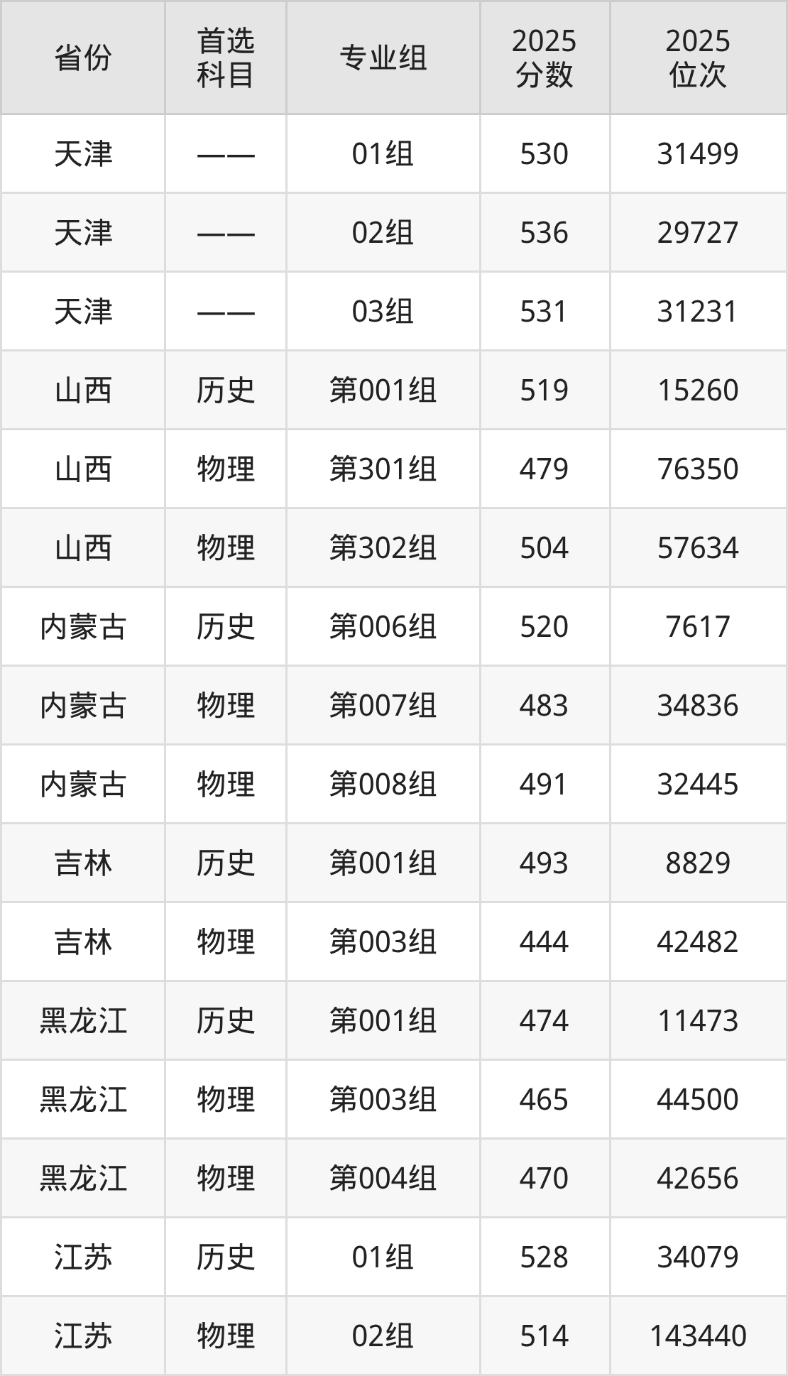 因为大部分地区目前只公布了院校(专业组)分数线,为了方便2026年考生参考,本文就整理出天津体育学院在全国各省不同科类的最低分: