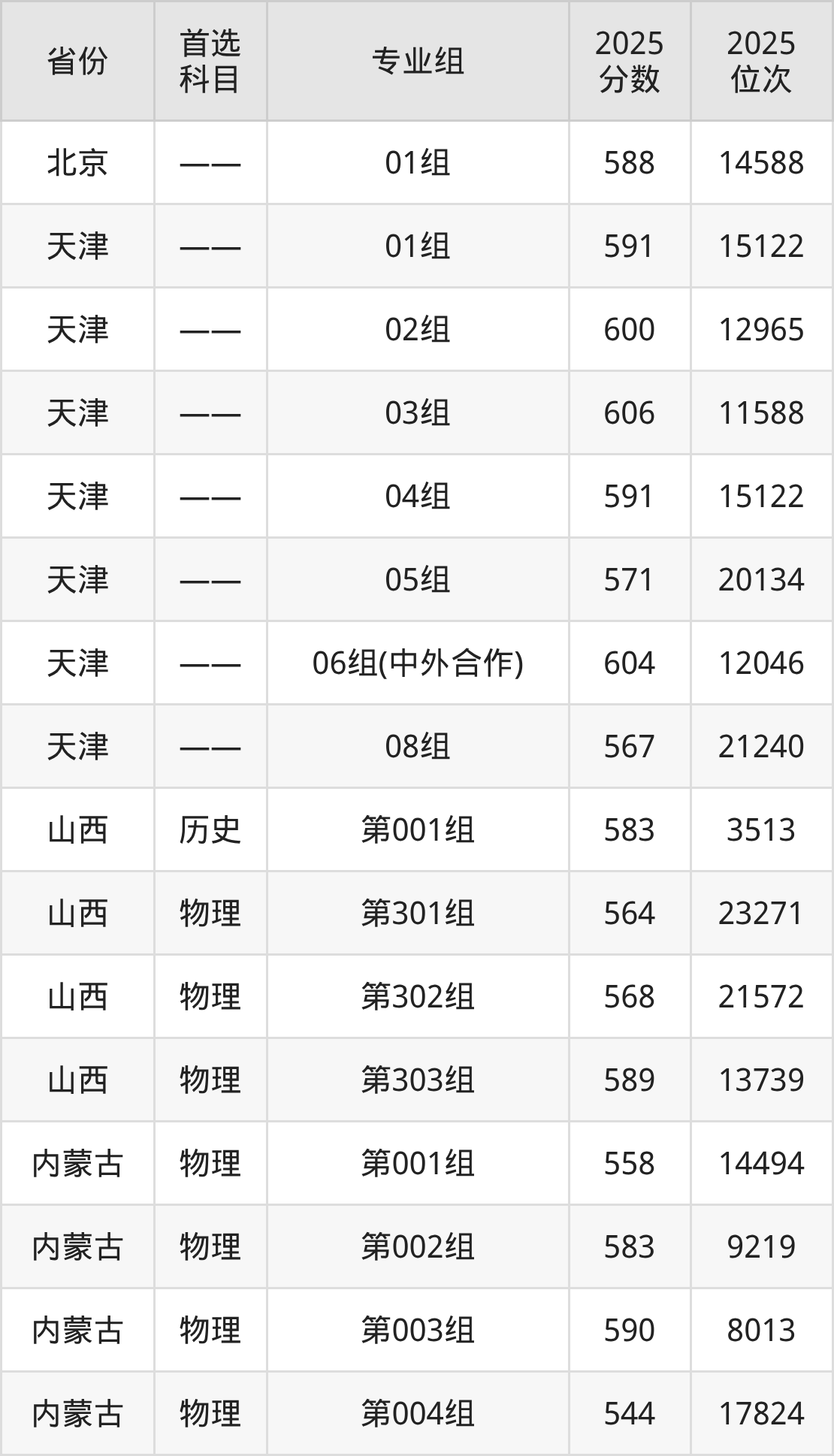 因为大部分地区目前只公布了院校(专业组)分数线,为了方便2026年考生参考,本文就整理出天津工业大学在全国各省不同科类的最低分:
