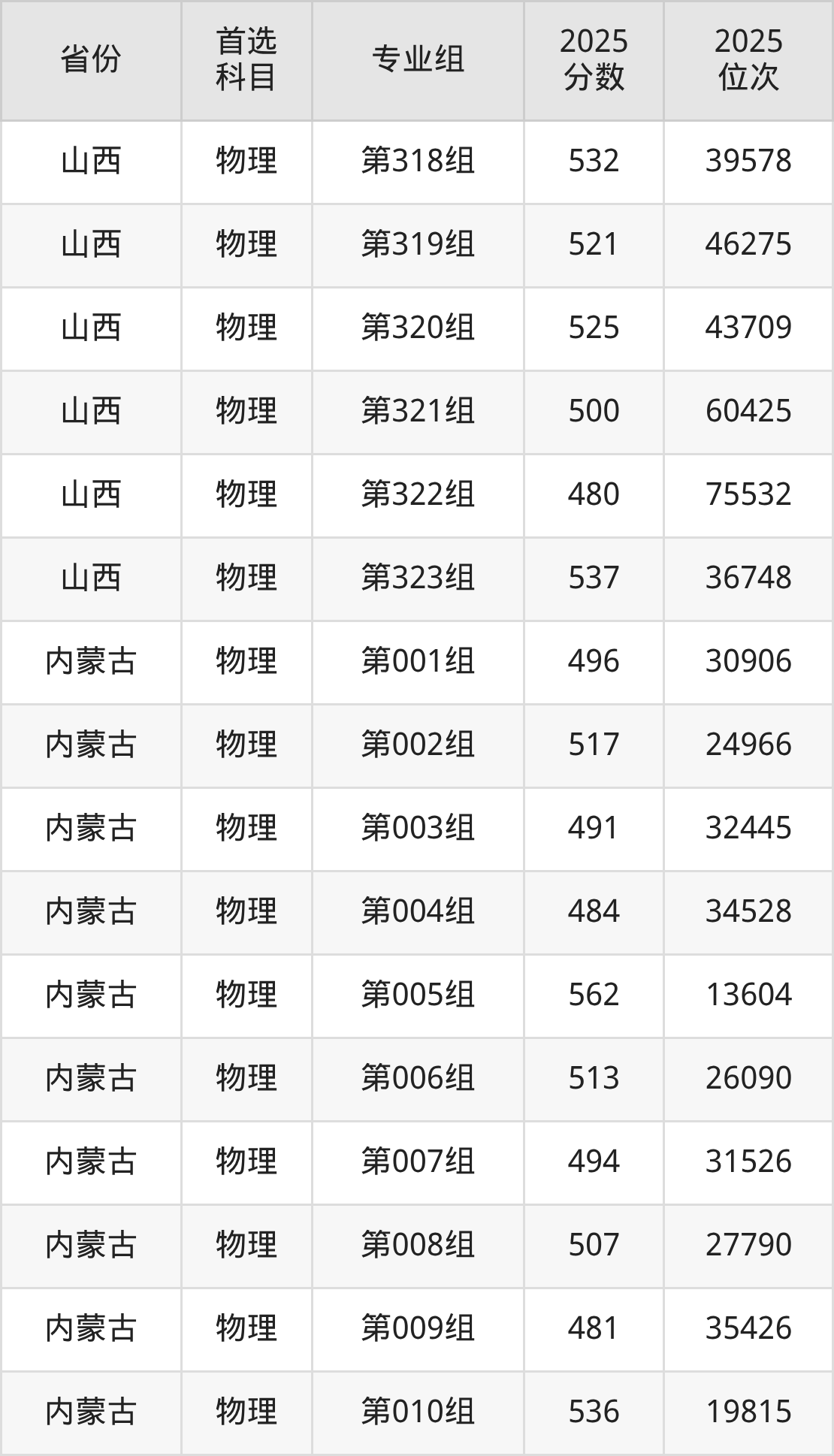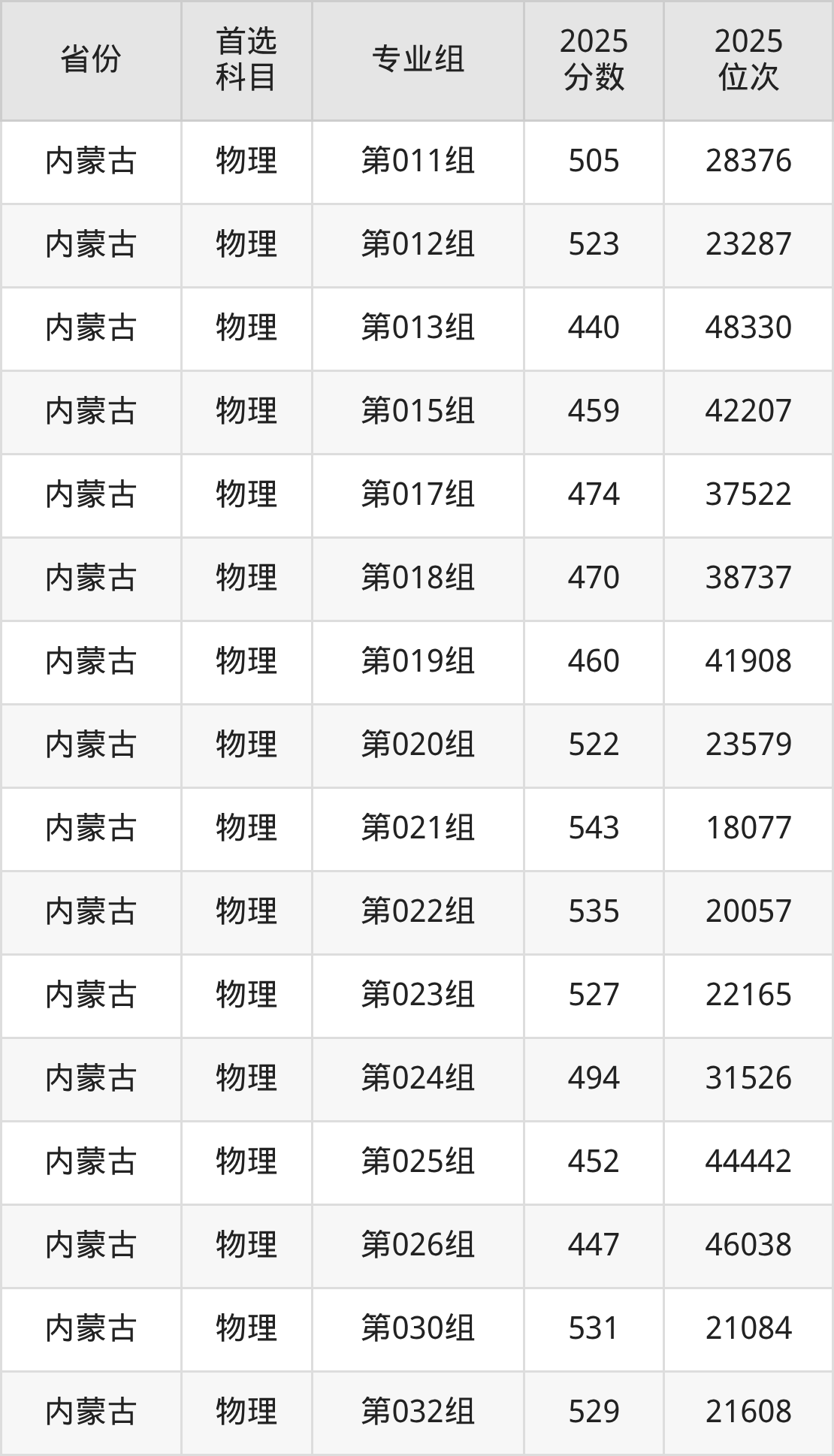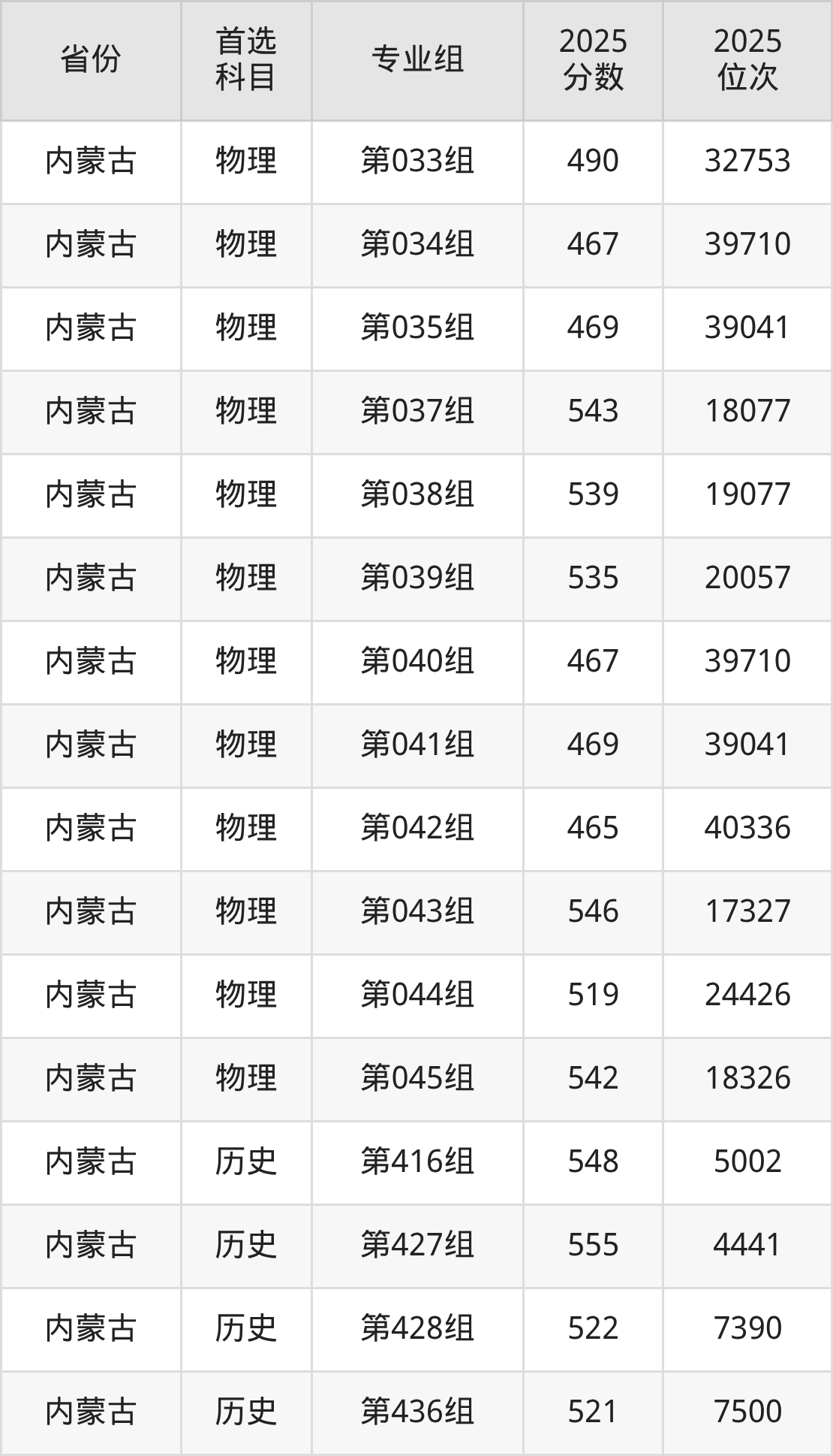 因为大部分地区目前只公布了院校(专业组)分数线,为了方便2026年考生参考,本文就整理出内蒙古工业大学在全国各省不同科类的最低分:
