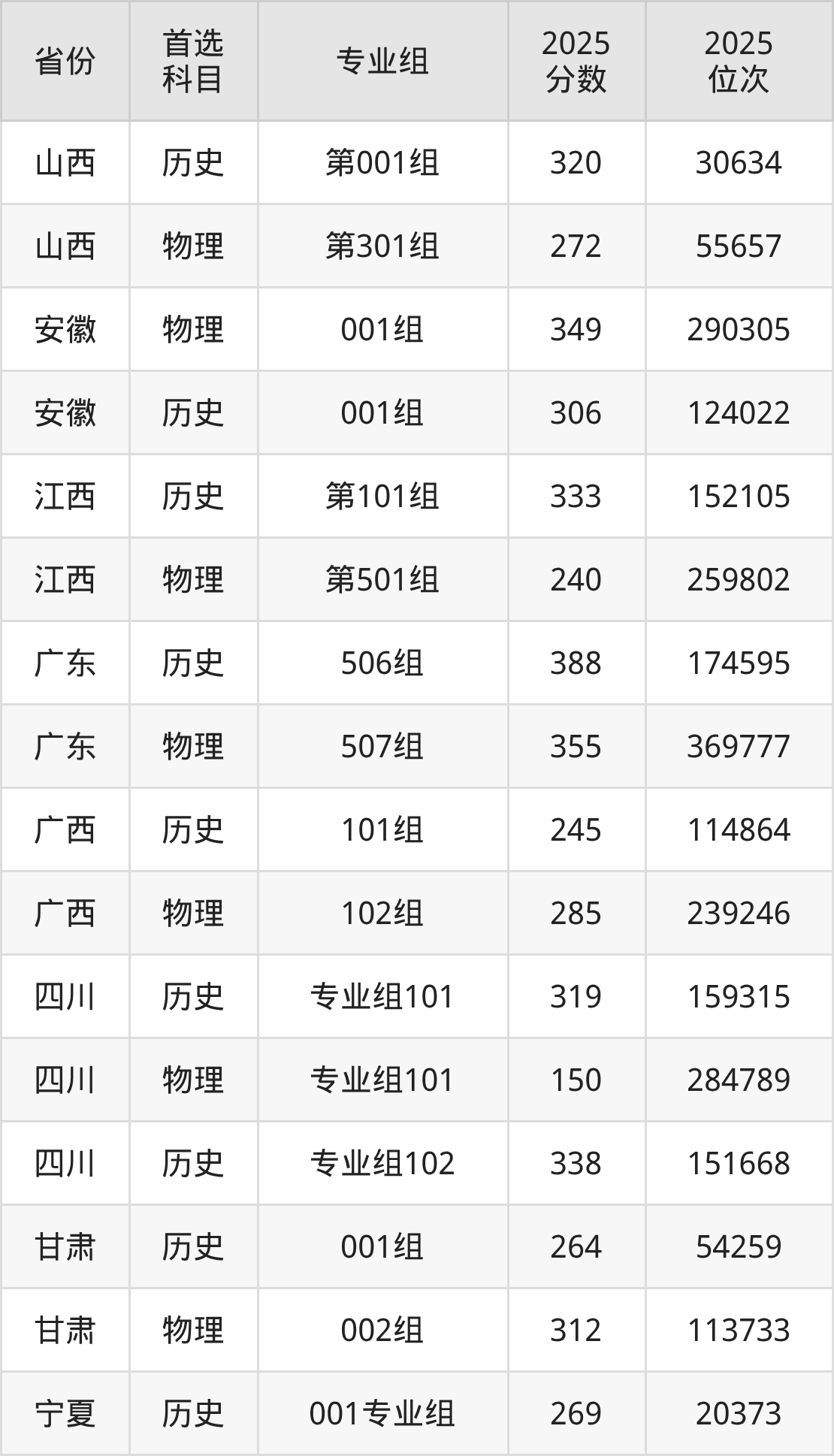 10.四川:物理类150分、284789位,历史类319分、159315位