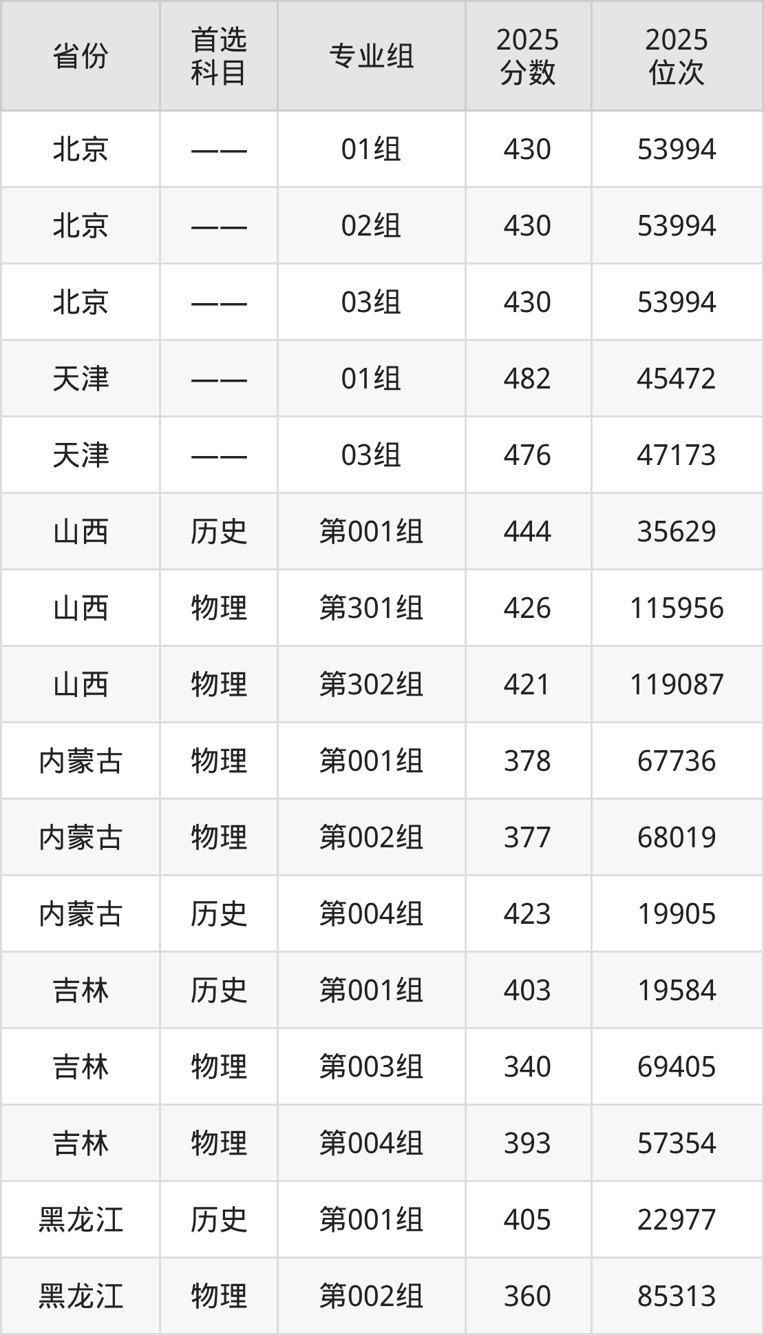 因为大部分地区目前只公布了院校(专业组)分数线,为了方便2026年考生参考,本文就整理出北京工业大学耿丹学院在全国各省不同科类的最低分: