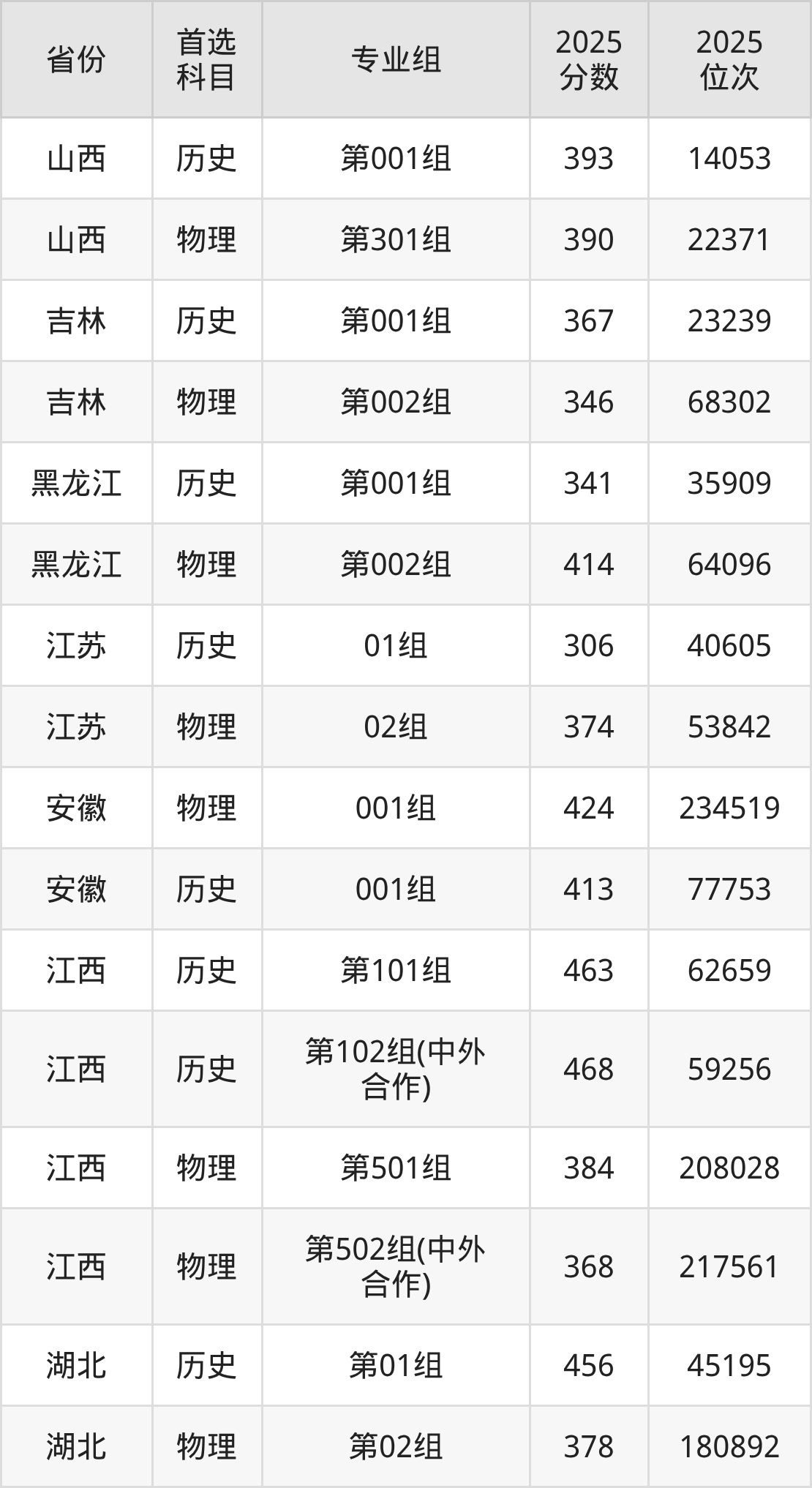 因为大部分地区目前只公布了院校(专业组)分数线,为了方便2026年考生参考,本文就整理出江西应用技术职业学院在全国各省不同科类的最低分: