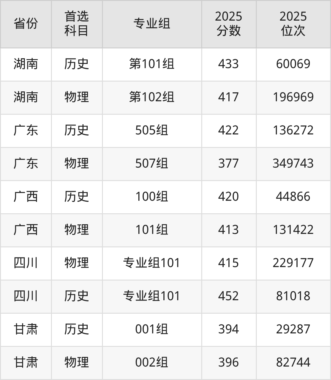 11.湖南:历史类433分、60069位,物理类417分、196969位